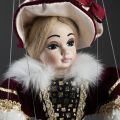 Die magische Marionette der Gräfin in reich verzierten, fast barocken Kleidern. Sehen Sie die schönen Details des Spitzenkleides und die sanfte Gesichtsbemalung.