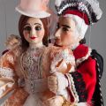 Les vêtements flamboyants évoquent l'atmosphère de la saison des bals. Les costumes cousus à la main sont élaborés dans les moindres détails, tous les volants et dentelles complètent astucieusement l'atmosphère baroque, l'époque qui favorisait le plus les spectacles de bal et théâtraux. Le baroque est aussi la période où le théâtre de marionnettes s'est développé - non seulement les nobles voulaient assister à des spectacles, les marionnettes étaient donc une alternative moins chère au théâtre pour le grand public.Ces marionnettes sont produites en éditions limitées de quelques pièces. La tête, les mains et les pieds sont moulés et peints à la main, le corps (squelette) est en bois de tilleul. La marionnette a un contrôle traditionnel, elle est reliée à la bascule par un fil solide, et des fils classiques sont utilisés pour contrôler les mains et les pieds.Découvrez le travail magnifique et détaillé sur les magnifiques costumes sur mesure. Ils sont fabriqués à partir de matériaux de haute qualité et mettent l'accent sur un traitement précis. La haute ornementation est absolument typique de cette collection.