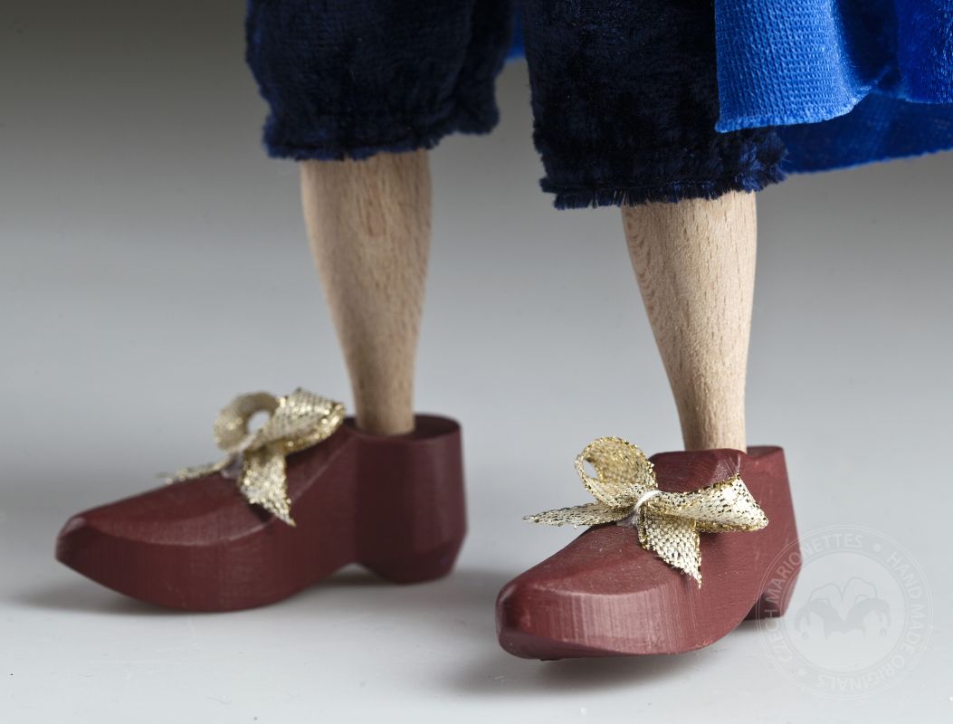 Loutka je vyrobena v klasickém stylu, kostra je vyrobena ze dřeva, hlava a ruce jsou lité ze zdravotně nezávadné  a nárazuvzdorné pryskyřice, nohy a boty jsou ručně vyřezané a broušené, obličej ručně malovaný. Má základní rozsah pohybu a je snadno ovladatelná, takže s ní snadno může hrát i úplný začátečník.