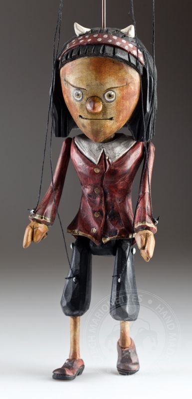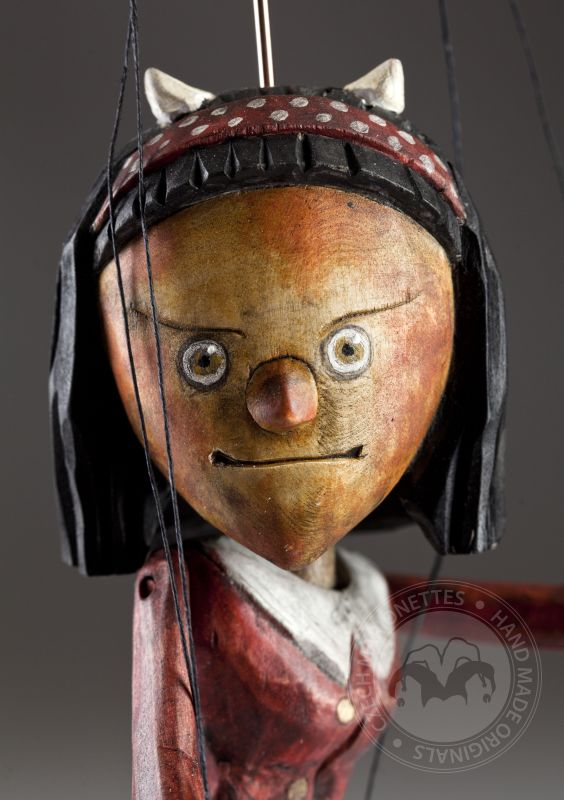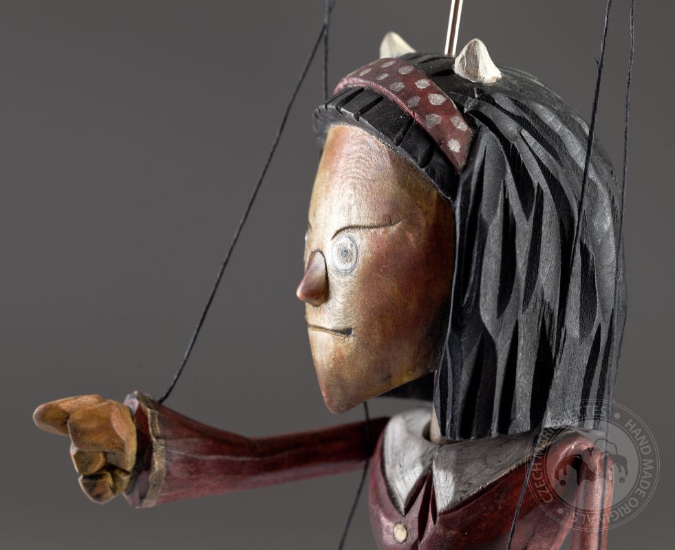 České přísloví říká, že "Kam nemůže čert, tam nastrčí ženskou" A naše čertice je kombinací obojího. Mírně zlomyslná, ale dobrácká. Čertů není nikdy dost – tedy o loutkách to platí rozhodně. A tanhle krasavice z dílny českých loutkářů je nádherně zpracový kus dřeva. Je to jedna ze čtyř čertích loutek, které přibyly do kolekce Superstars.