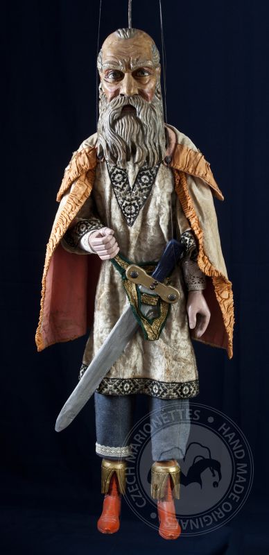 Tato loutka rytíře je detailně propracovaná. Všimněte si jeho červených dřevěných bot, plnovousu a krásné tuniky s ručním vyšíváním. Jeho ruka je přizpůsobená k tomu, aby do ní mohl uchopit svůj dřevěný meč. Tento vysloužilý rytíř se bude vyjímat ve sbírce jakéhokoli loutkového nadšence.
