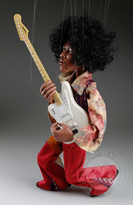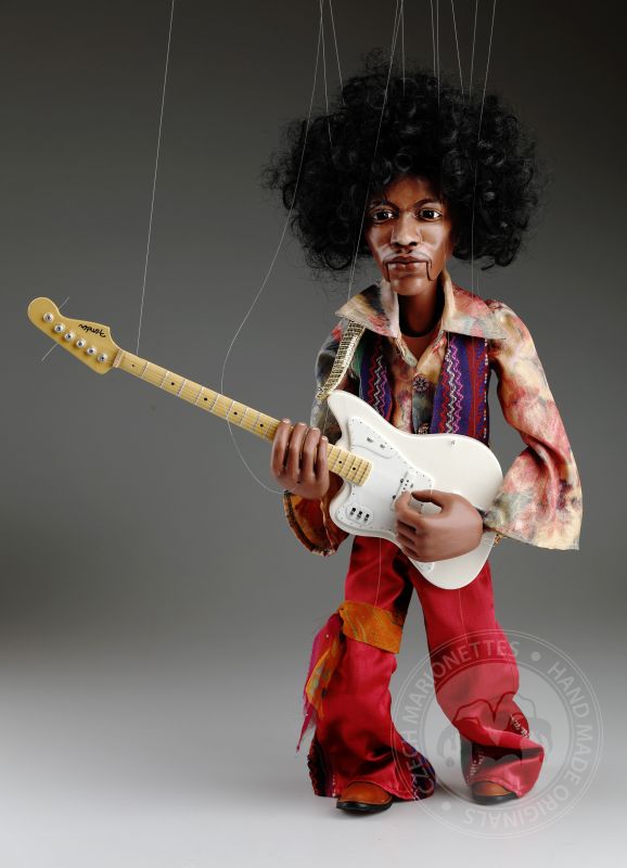 Kdo by neznal Jimiho Hendrixe.. kytaristu, který je označován jako jeden z nejlepších vůbec. Nyní máte možnost tohoto kytarového boha mít jako realistickou loutku ručně vyrobenou loutku, která je navíc skvěle pohyblivá a tím pádem vhodná pro loutkové představení.