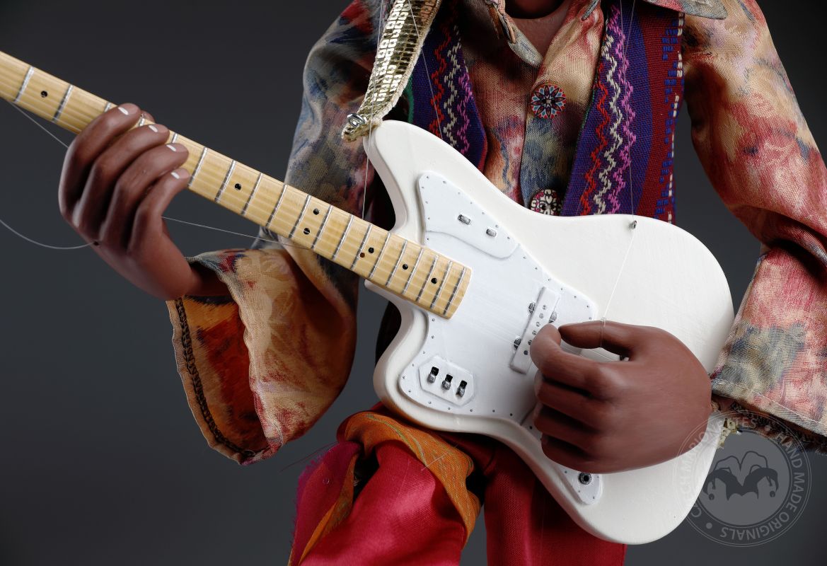 Jimi Hendrix je jednoznačně jeden z nejznámějších rockových kytaristů. Nyní k vám přichází jako performerská loutka, se kterou můžete hrát profesionální představení či jen tak pro radost.
