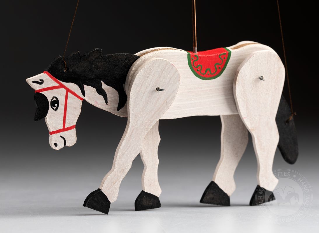 Tato tradiční loutka koníka Bělouše je vhodná pro všechny milovníky koní či loutkové nadšence. Nasbírejte celou kolekci dřevěných loutkových zvířátek!