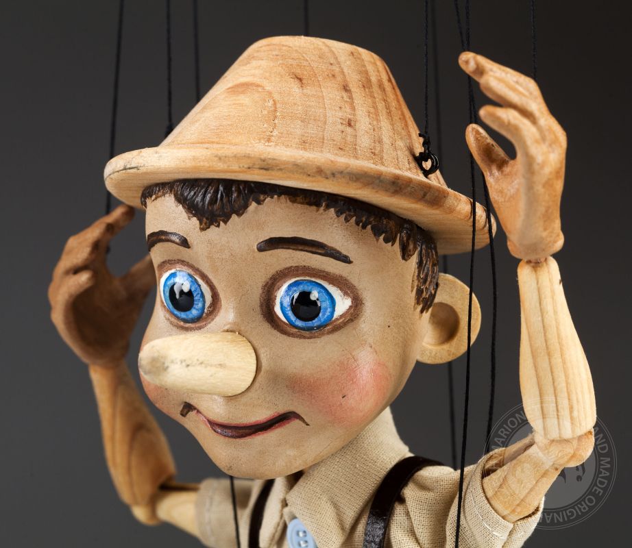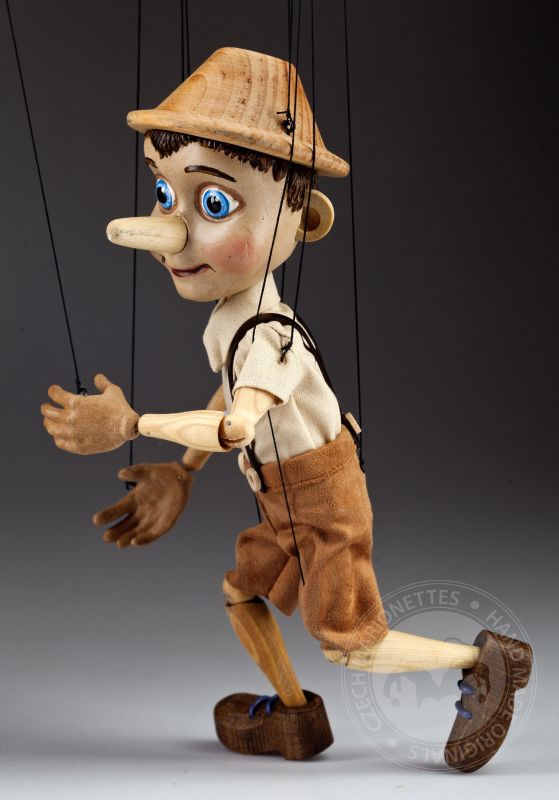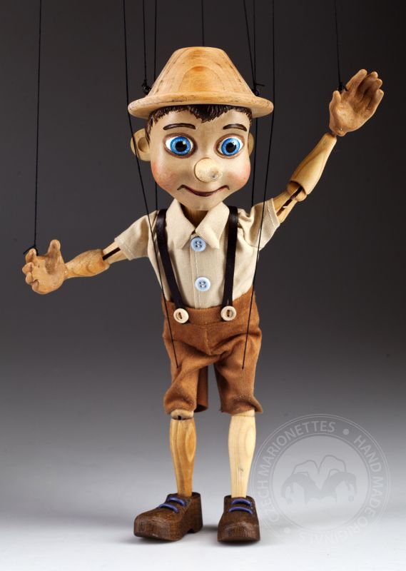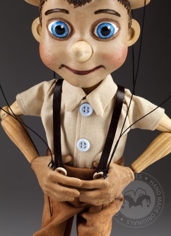 Loutka Pinocchia je jednou z nejžádanějších vůbec. A není se čemu divit. Náš Pinocchio je usměvavý a hravý. Loutka pro malé i dospělé. Precizní a detailní zpacování dává loutce osobitý charakter, odllišný od klasického Disneyovského provedení. Myslíte, že takto mohl vypadat ten originální?