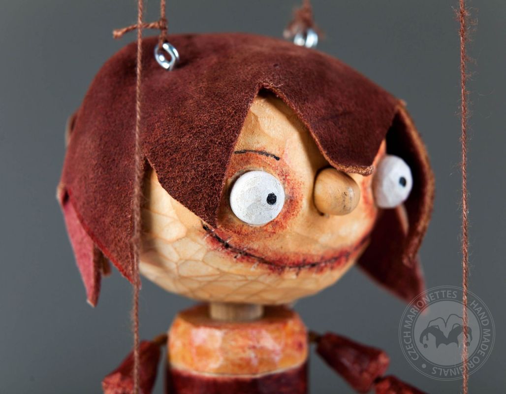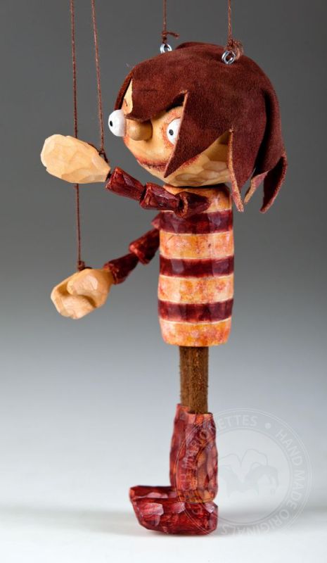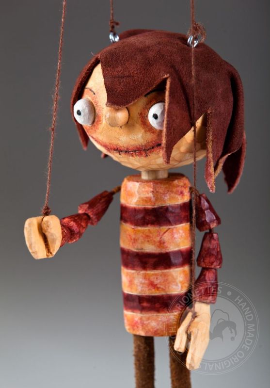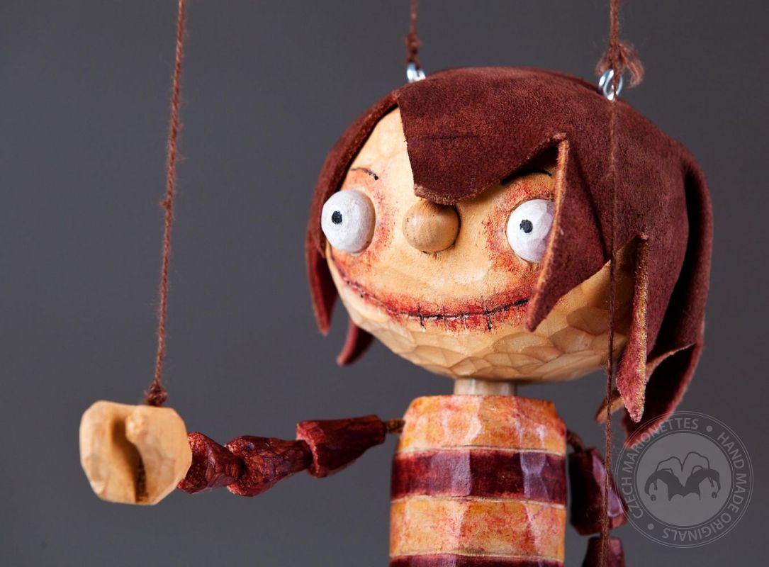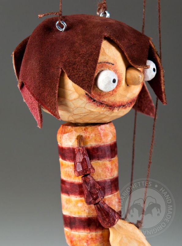 Naše marioneta je vyrobena z dubového dřeva, je ručně vyřezaná a malovaná nezávadnými barvami.