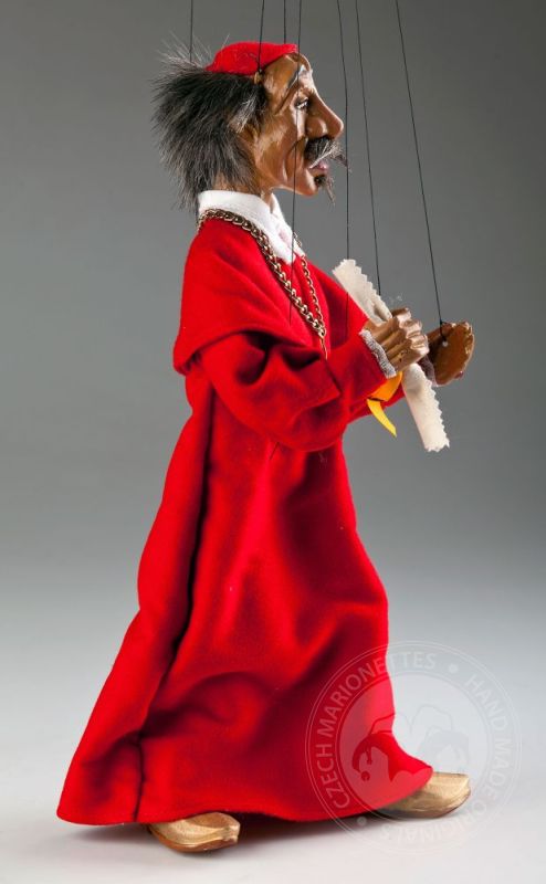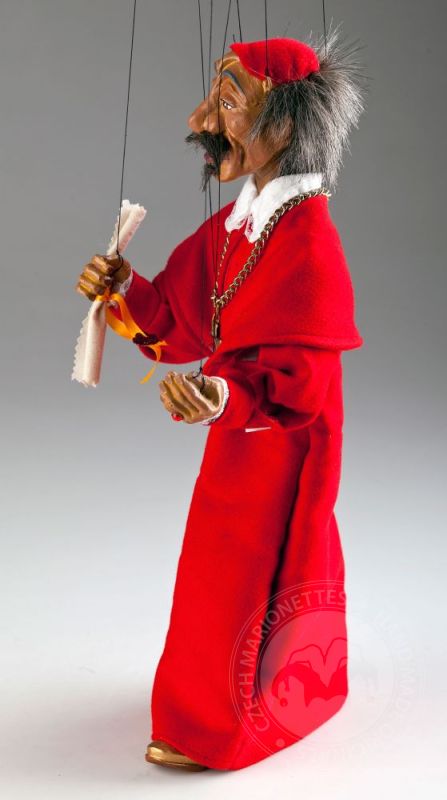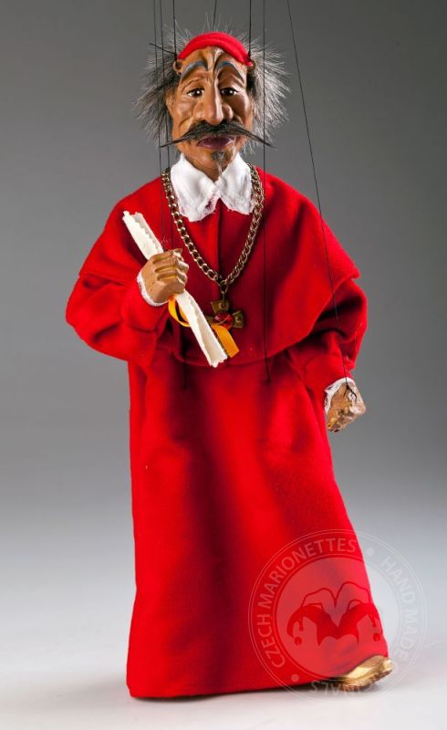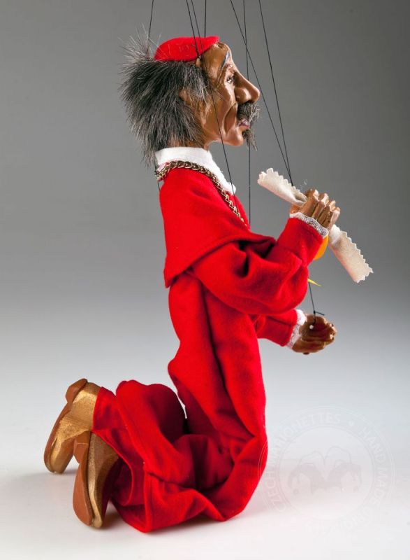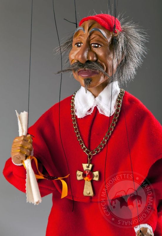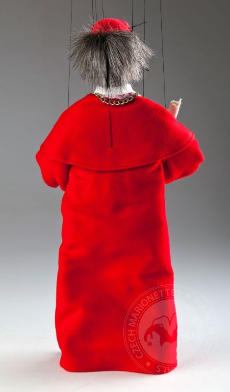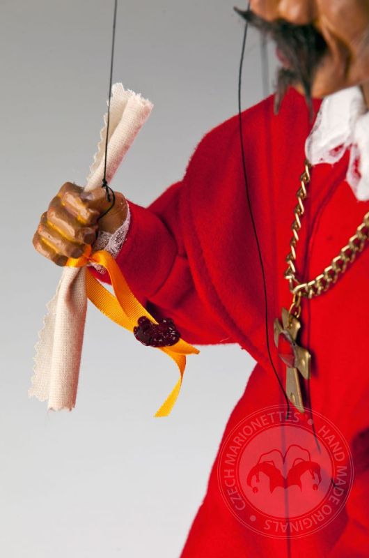 Kardinál je velmi silná osobnost. Uznávaný duchovní má moc, respekt a je pravou rukou krále. Na jeho bedrech leží nelehké státnické úkoly a velká zodpovědnost. Všechny tyto aspekty se snoubí ve výrazu ručně malovaného obličeje loutky kardinála. Šedý knír a tenká bradka jen podtrhují jeho osobitý styl. Kardinálův oděv je typický pro svou dobu i postavení. Nosí klasické rudé roucho, bílá košile a masivní zlatý řetěz s křížem na krku. Jeho jediný, ale velmi výstižný doplněk je svitek pergamenu, který svírá v pravé ruce. Celá loutka je ručně vyrobená a je výsledkem precizní práce se smyslem pro detail.