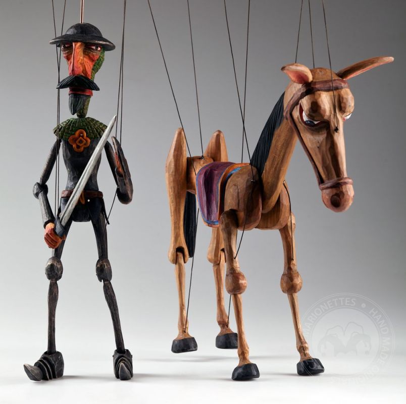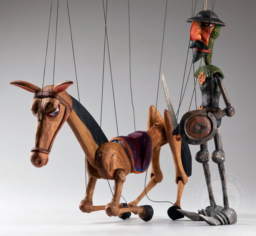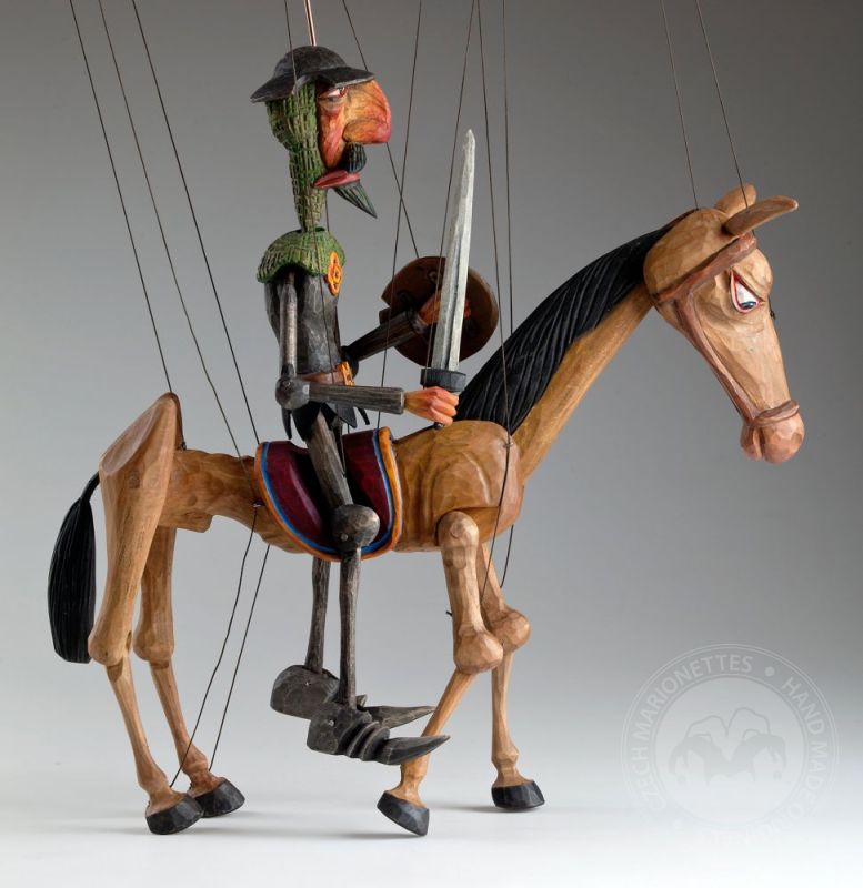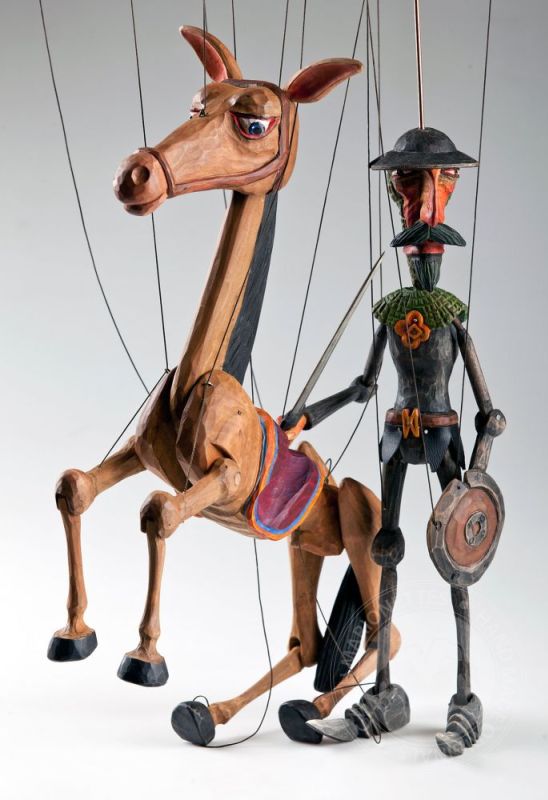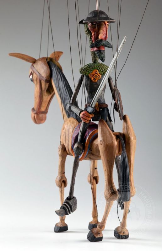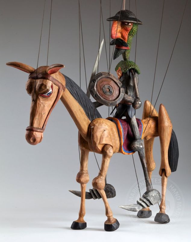 Loutky Dona Quichotta a jeho věrného koně - Rocinanty, jsou mistrovským kouskem. Precizně vyřezávané a malované, s velkým důrazem n detail. Sedlo, brnění, meč, štít a helma - vše ztvárněné ve vysoké kvalitě jak řemeslné, tak umělecké. Zároveň je dodržena top úroveň i co se týká pohyblivosti - ne každý by chtěl mít loutku jen vystavenou :)