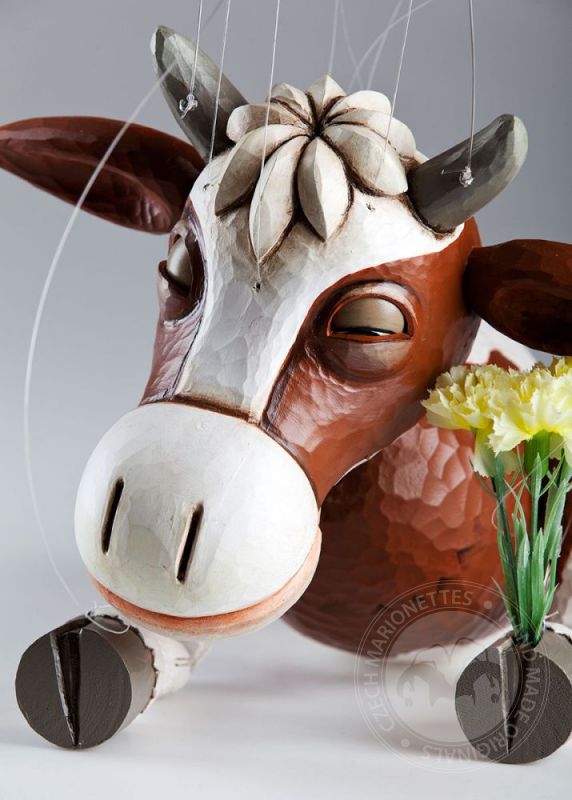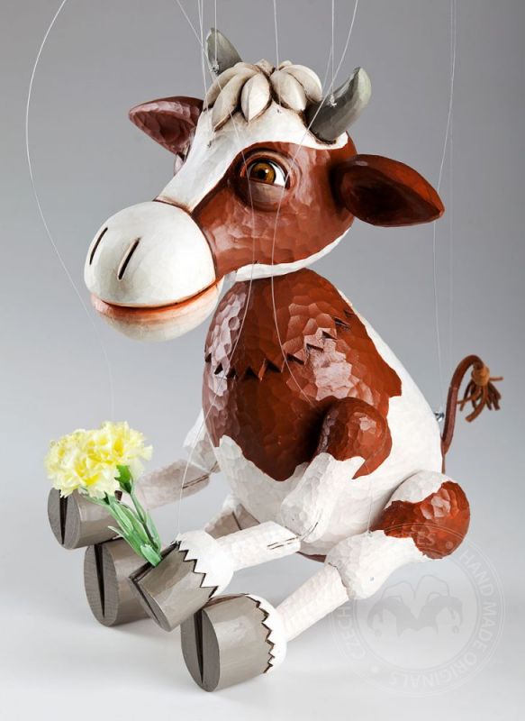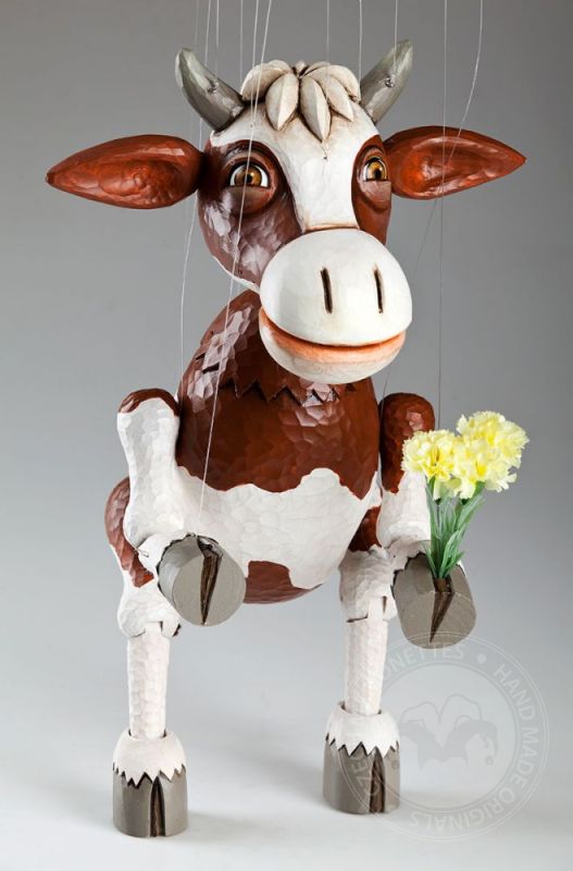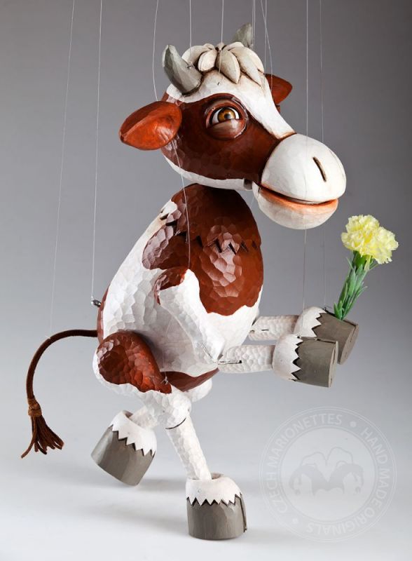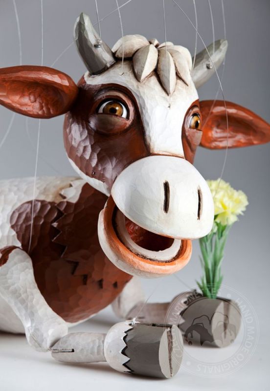 Dřevěná, ručně vyřezávaná profesionální loutka - Veselá Kravička ve Vás vždy vzbudí dobrou náladu. Profi loutka potěší i variabilitou poloh.