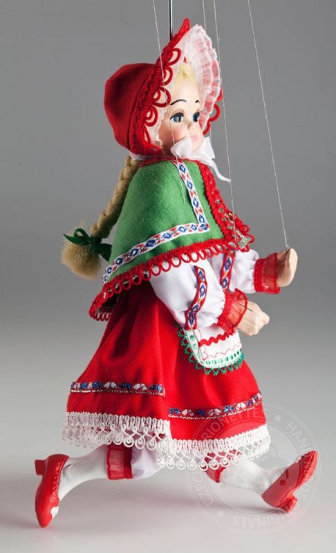 Nádherně zdobená loutka Červené Karkulky