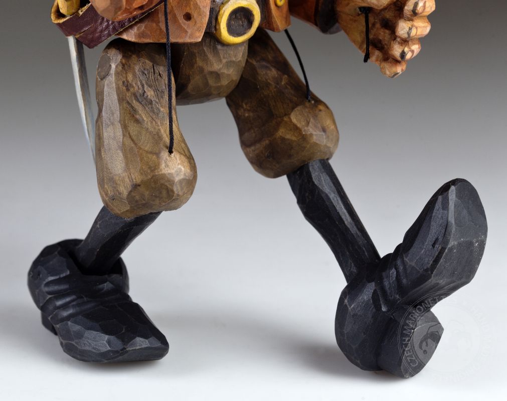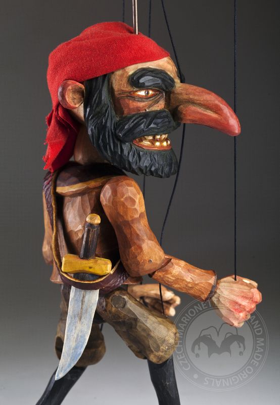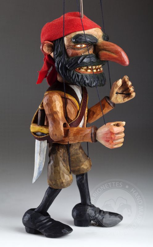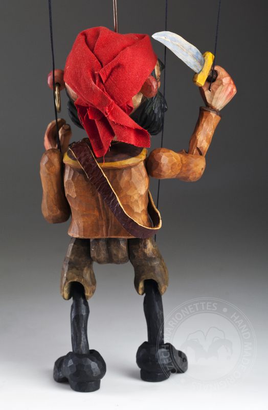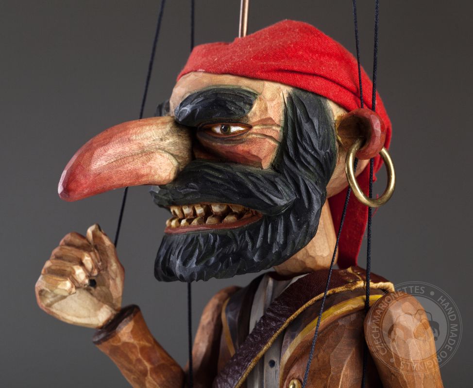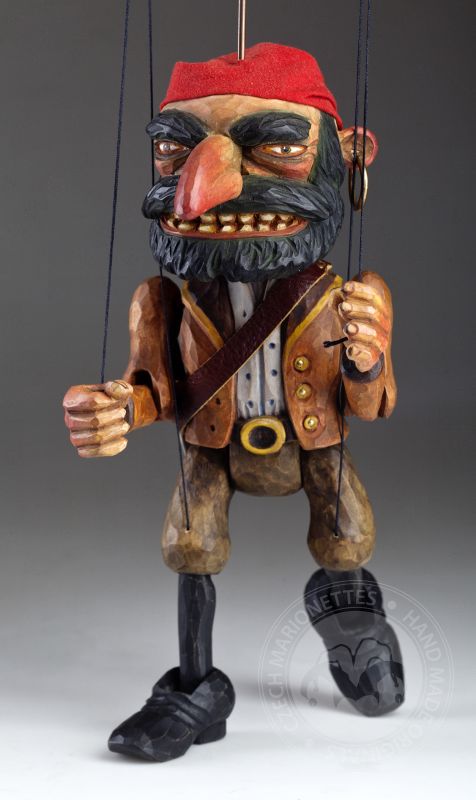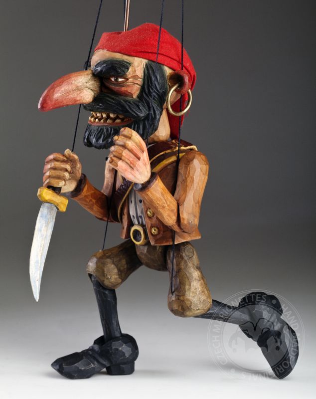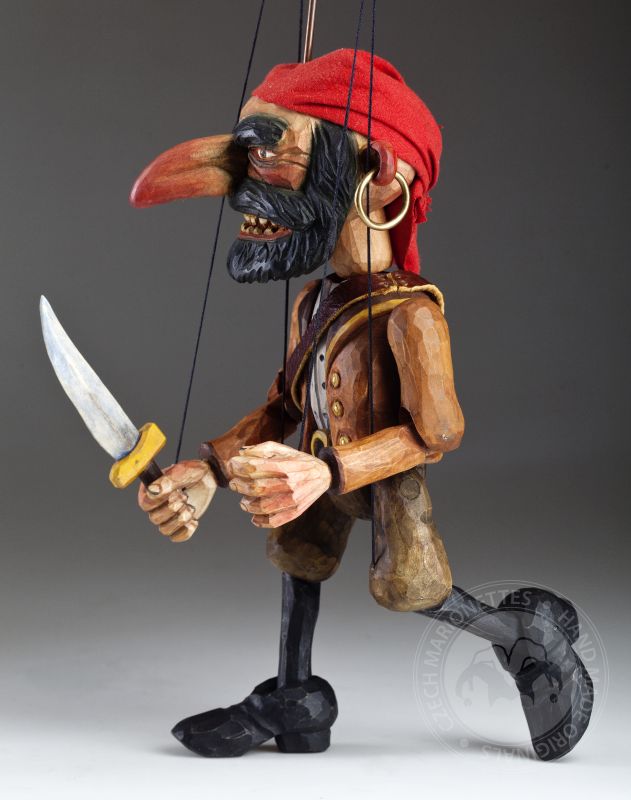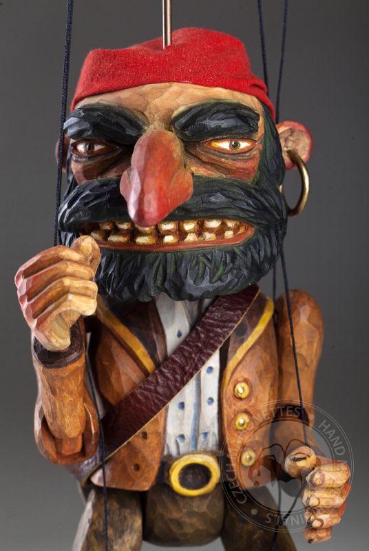 Loutka Pirate Captain Morgen je ručně vyřezávaná z lipového dřeva jedním z našich nejlepších řezbářů a má dopracováno plno úžasných detailů, jako je kožený opasek přes rameno, malý meč, látkový šátek nebo zlaté náušnice.