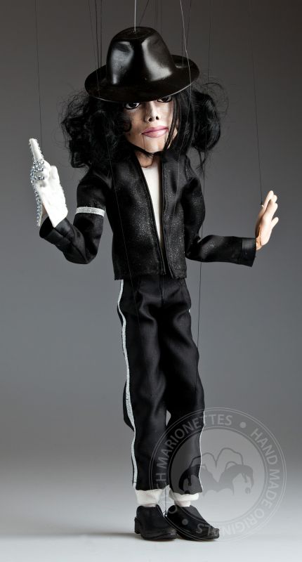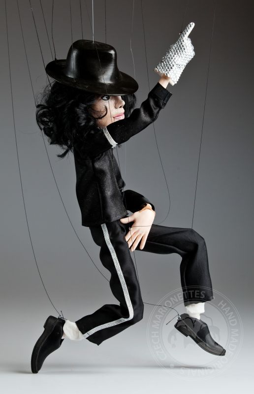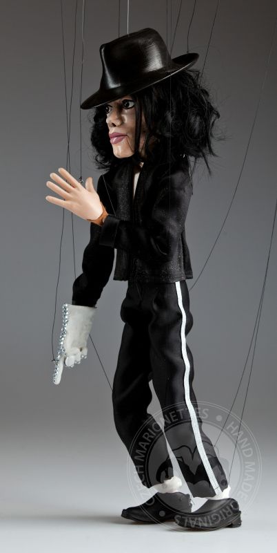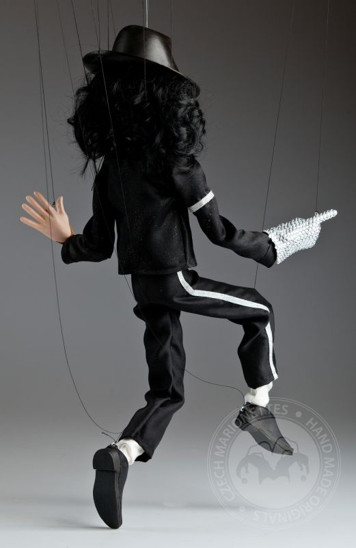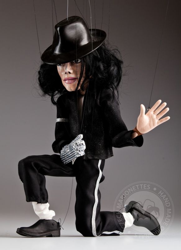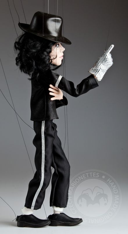 Michael Jackson byl vždy jednička na pódiu a toho jsme se při navrhování jeho loutky drželi. Pohyblivost, vyvážení a vahadlo jsou proto na špičkové úrovni. Standardně má také otevírací ústa a pohyblivý klobouk. Vhodné pro pouliční představení, kabaretní představení, pro hraní. Tato loutka se vyrábí v limitované edici 50 kusů. Za příplatek po domluvě si můžete přizpůsobit vzhled loutek, kostým a případně i připlatit za rozšířené funkcionality. Váš Michael Jackson bude očíslován a pošleme vám spolu s ním i certifikát podepsaný šéfem naší cechovní dílny a loutkářem, který měl právě vaši loutku na starosti.