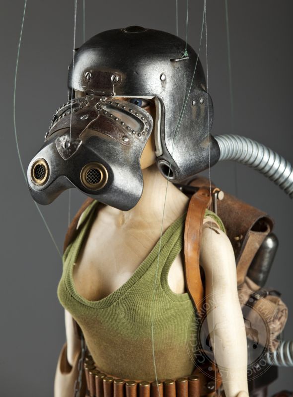 Václavova fantazie jakoby neznala hranic. Někdy jej inspiruje mytologie, jindy zvířecí říše, tato roztomilá slečna patří mezi steampunkovou kolekci. Charakteristickým znakem jeho loutek je perfektní důraz na detail, bezchybné začistění. Každý tah dláta i štětce je opodstatněný, každý tvar přesně takový, jaký by měl být.