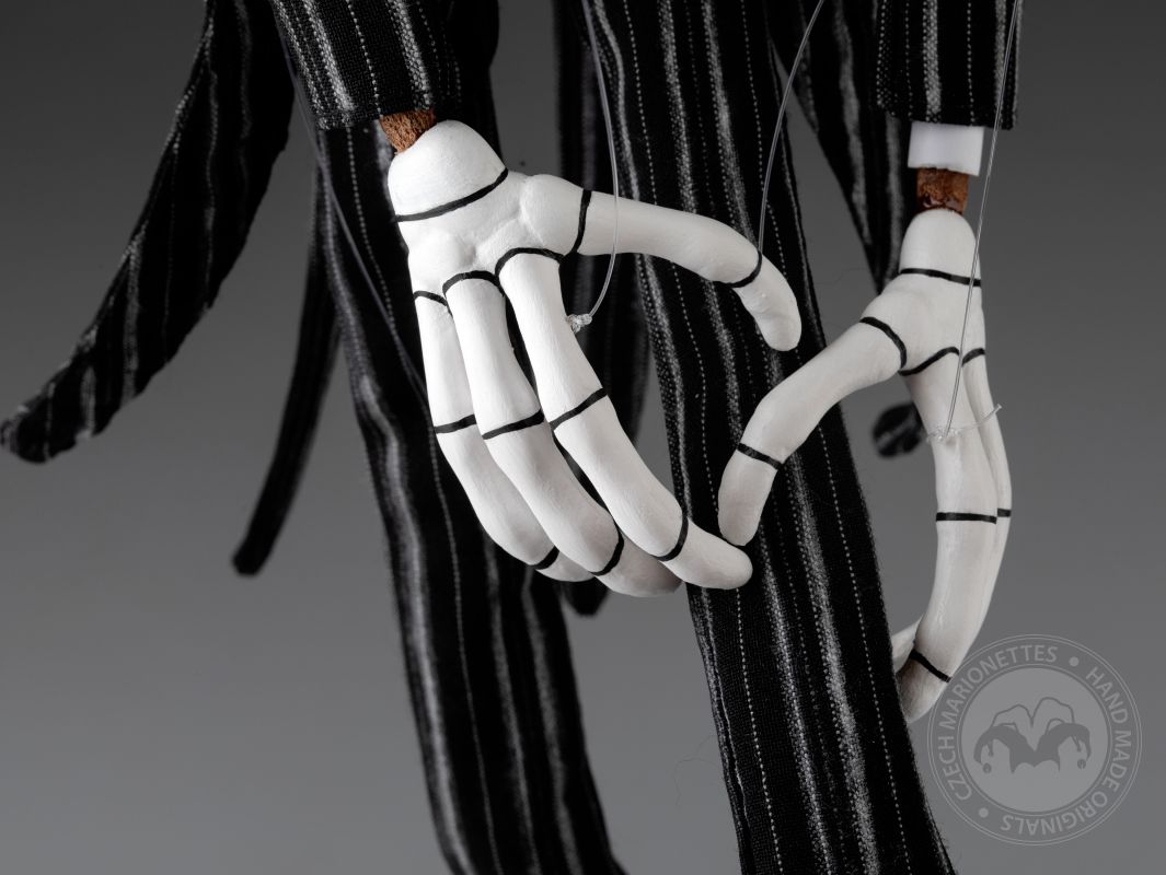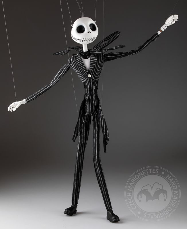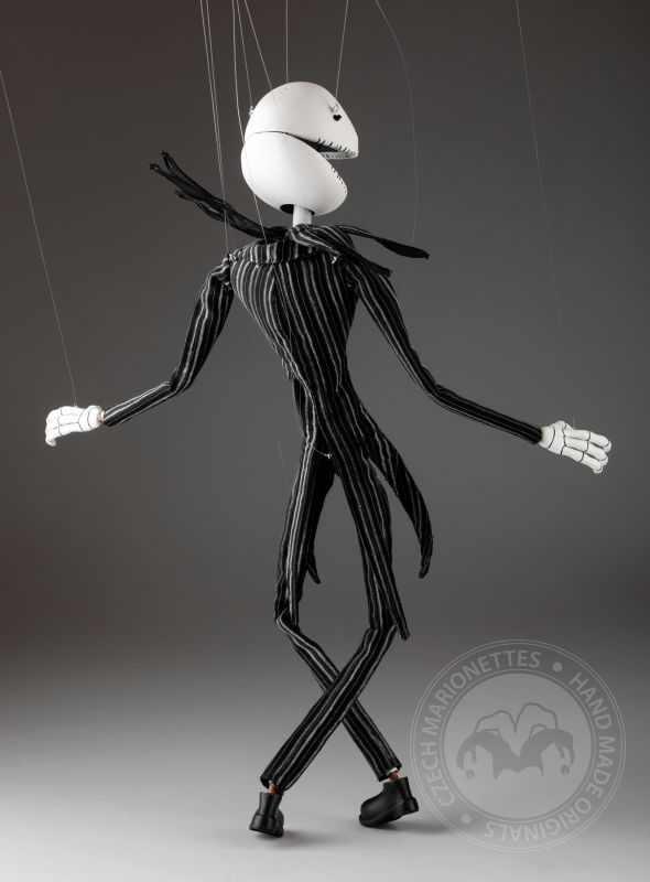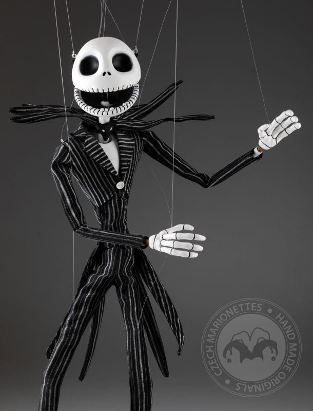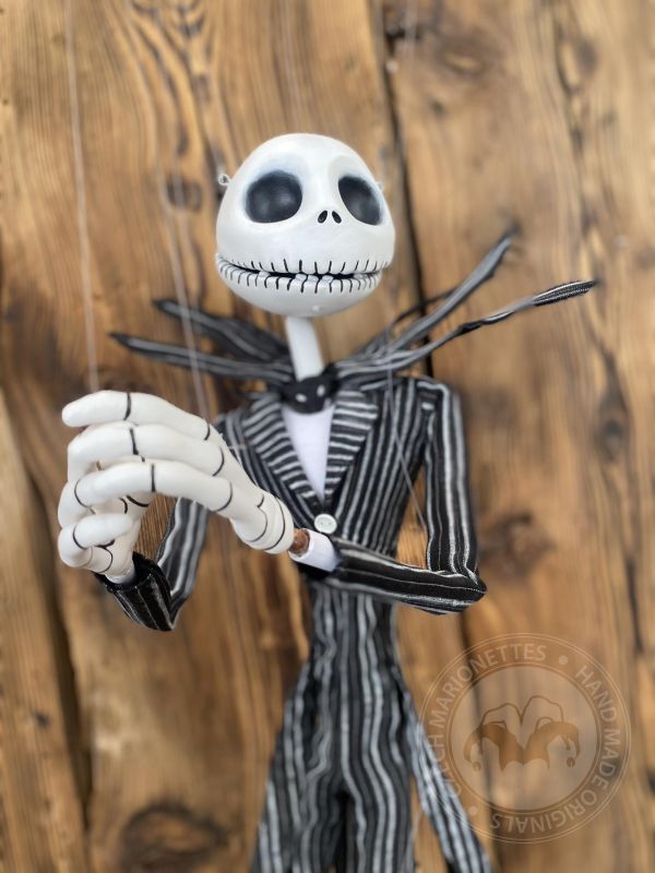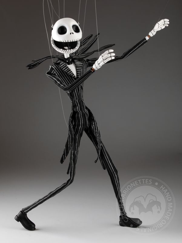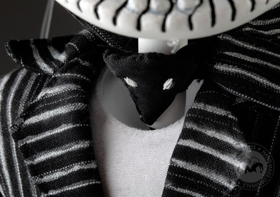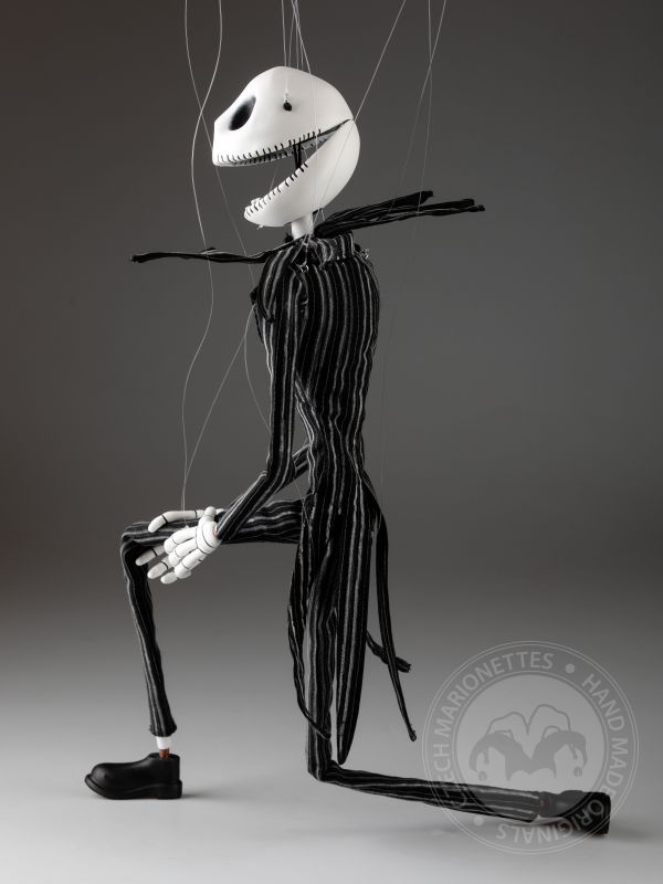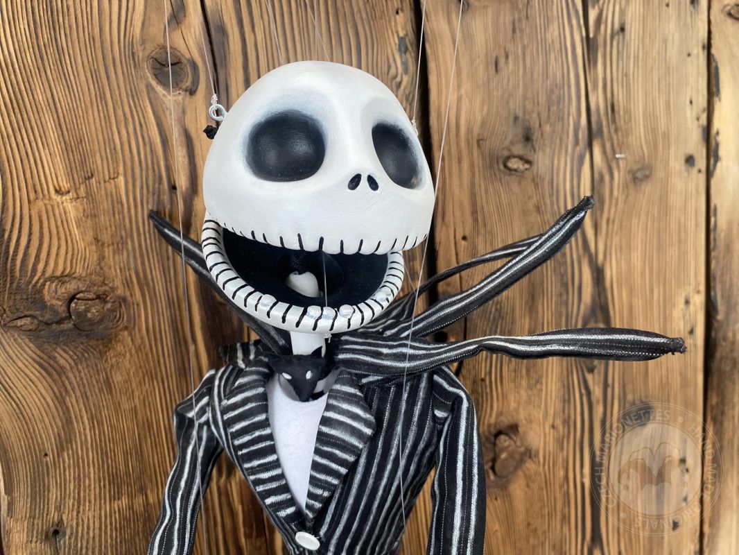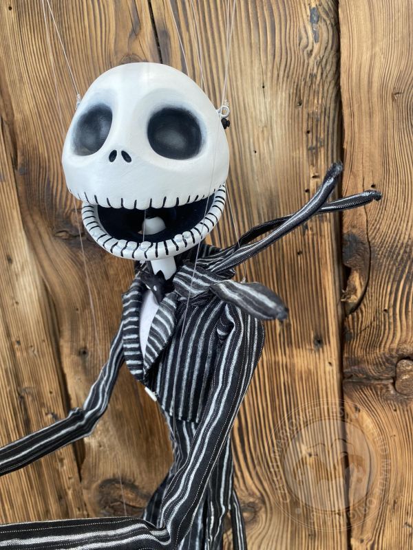 Jack Skellington – Eine berühmte Figur aus Tim Burtons Film „Nightmare Before Christmas“. Jetzt bringen wir ihn als Marionette mit beweglichem Mund. Absolut erstaunliche Kreation aus unserer Werkstatt.