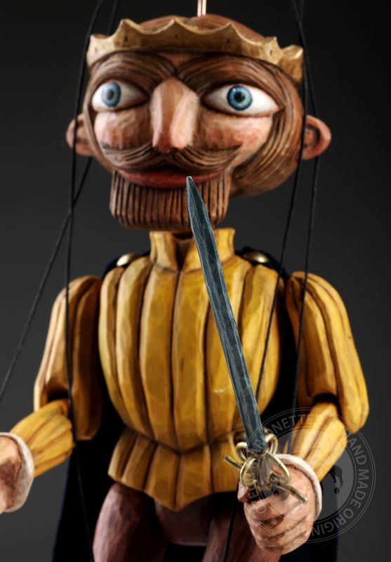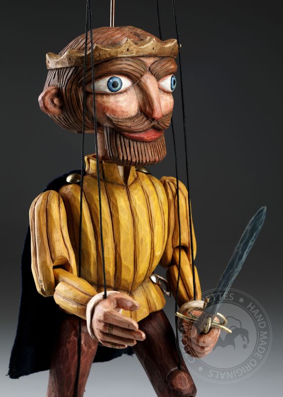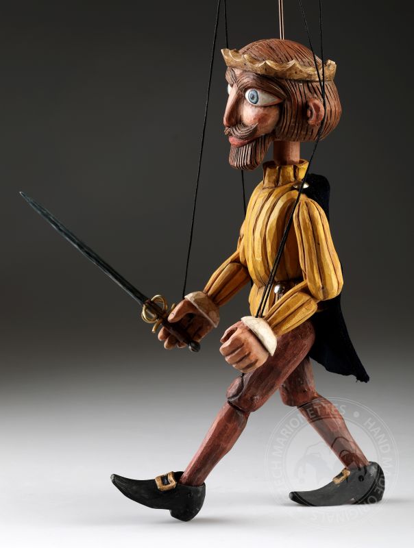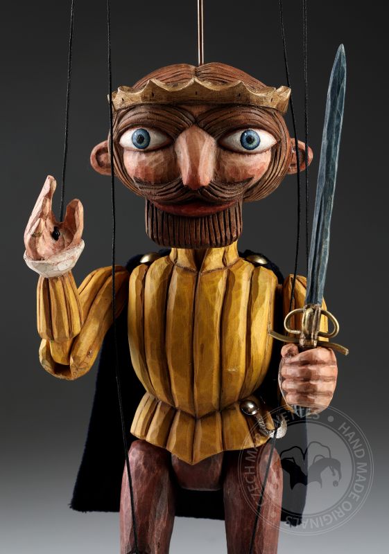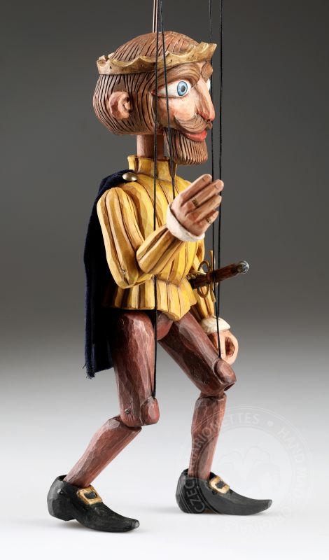 Stylized wooden prince puppet in retro style - inspired by Czech antique puppets