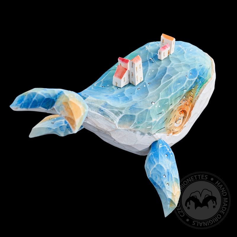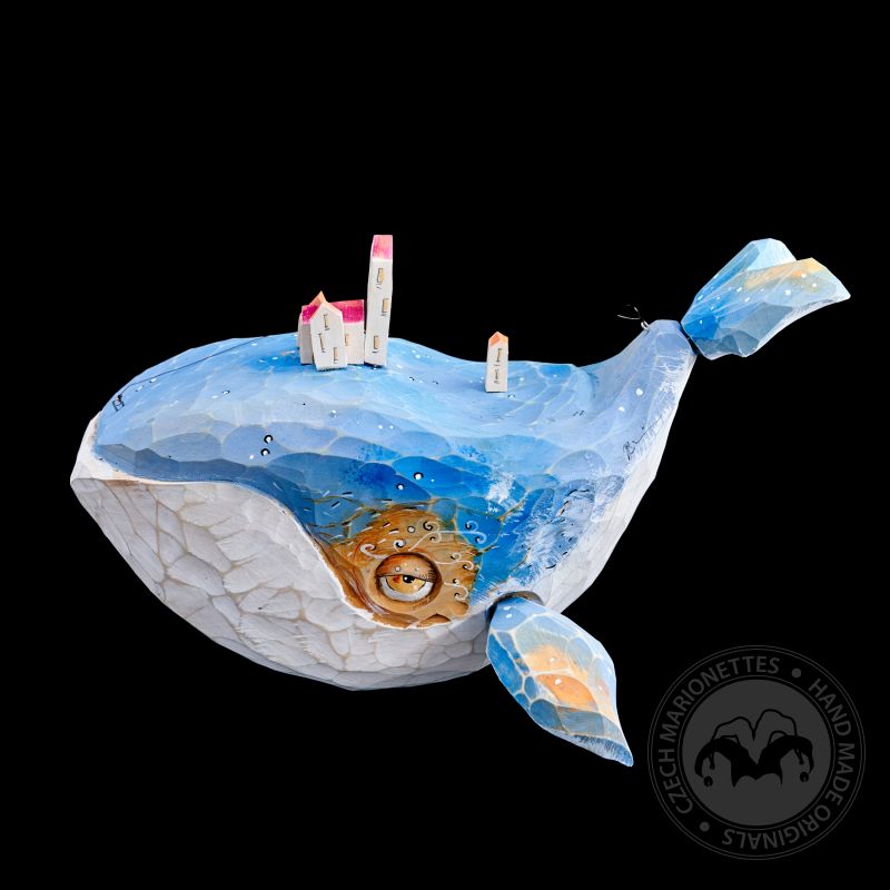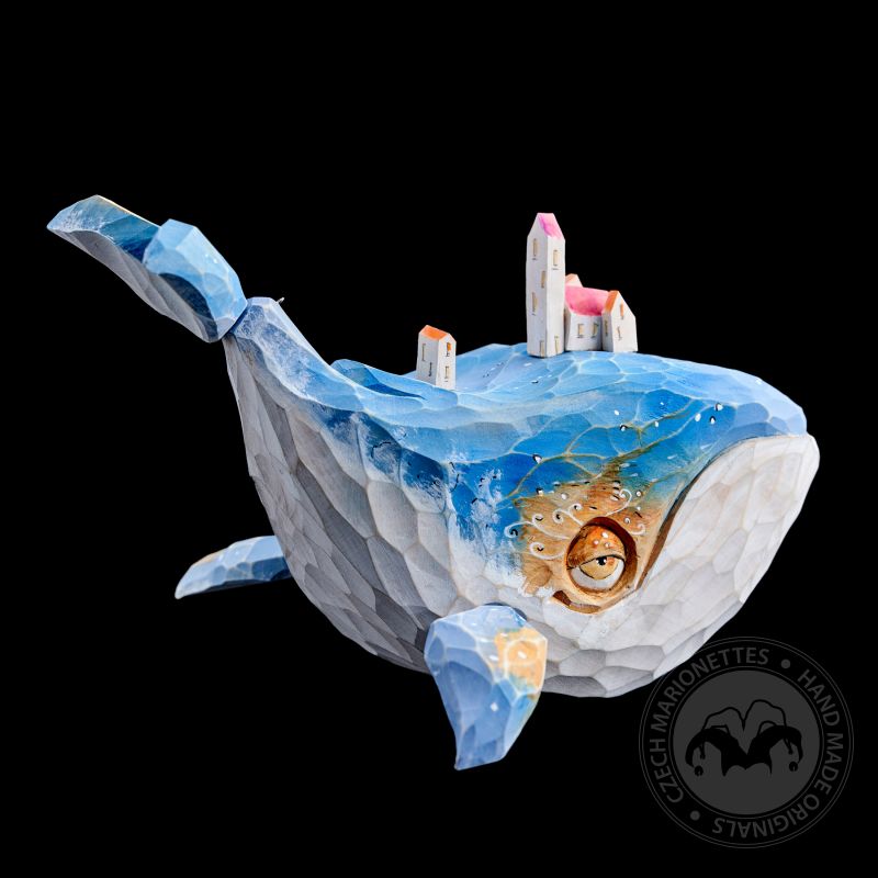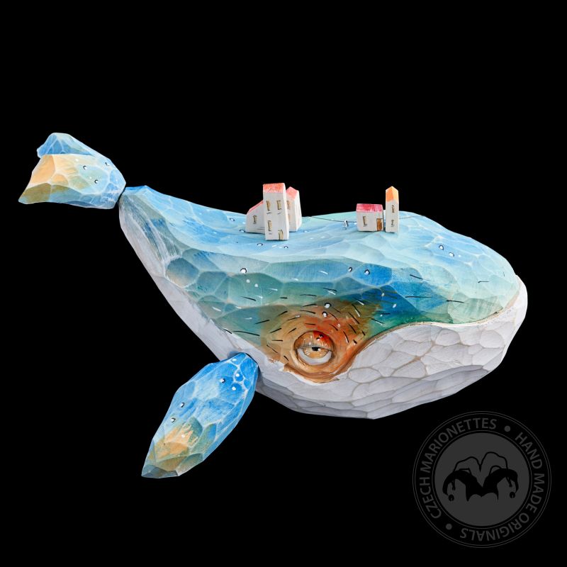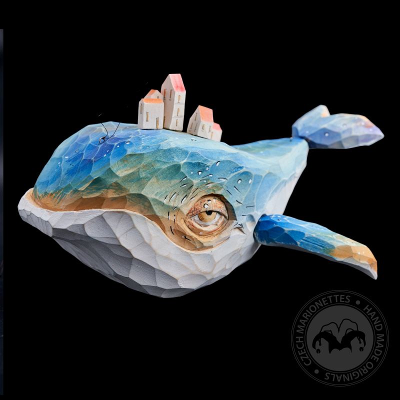 This wooden whale is hand carved and a true piece of art. An absolutely unique creation from one of the best Czech artists, Ludek Burian, renowned for his exceptional craftsmanship. Each whale is meticulously crafted, with exquisite attention to detail, making it not only a stunning decoration but also a conversation starter.