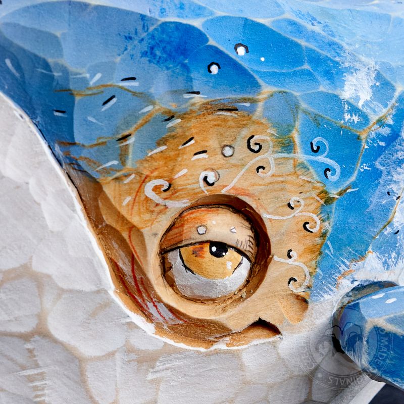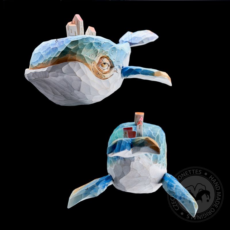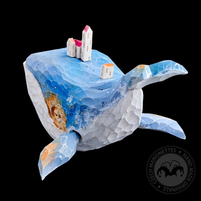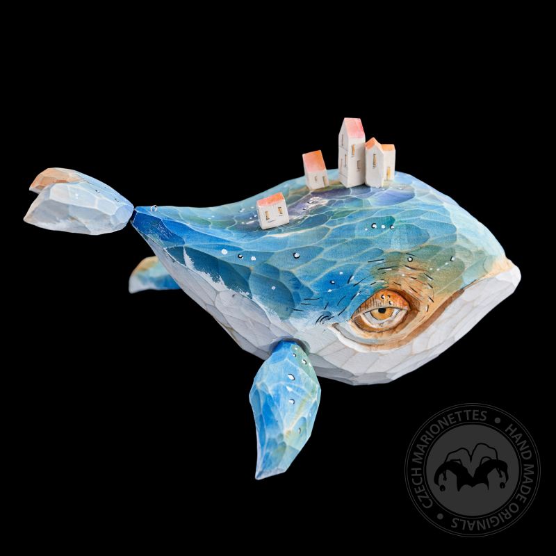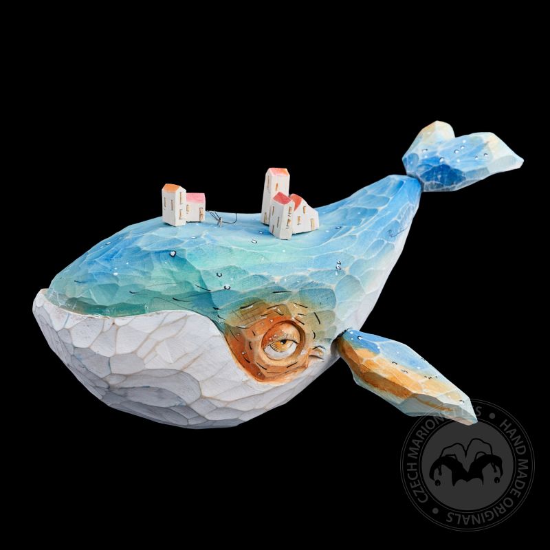 This wooden whale is hand carved and a true piece of art. An absolutely unique creation from one of the best Czech artists, Ludek Burian, renowned for his exceptional craftsmanship. Each whale is meticulously crafted, with exquisite attention to detail, making it not only a stunning decoration but also a conversation starter.