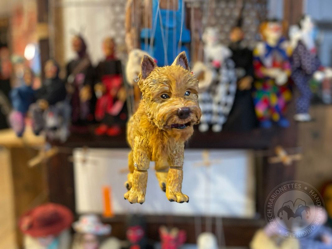 Dorothy marionette with movable mouth and eyes, basket and Toto dog