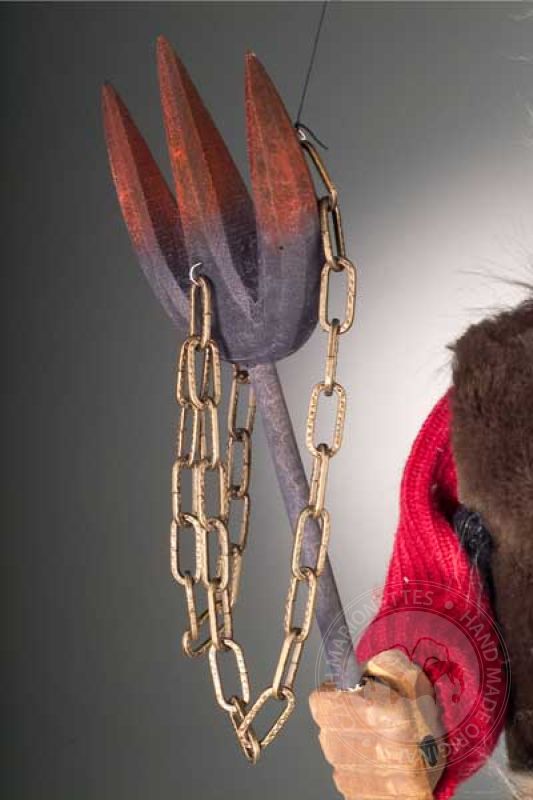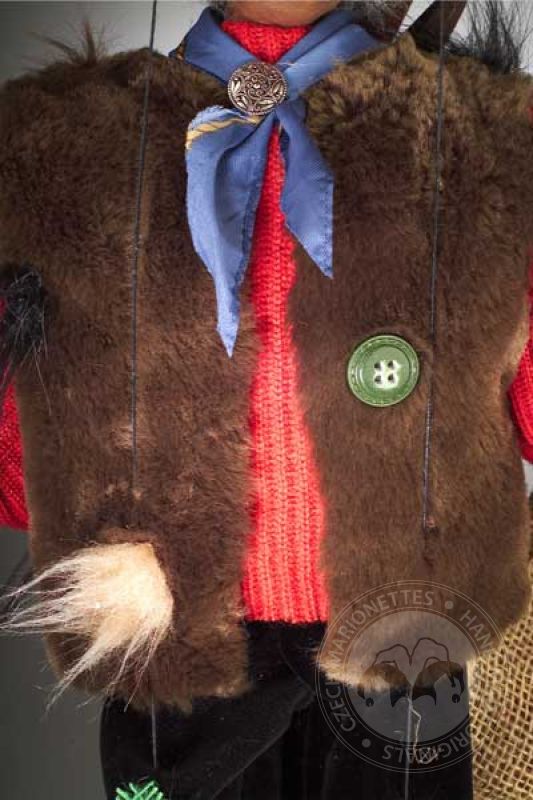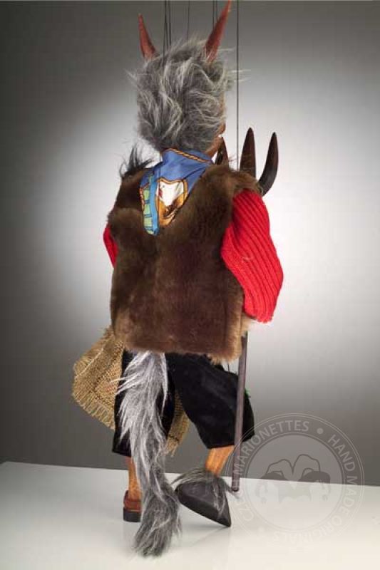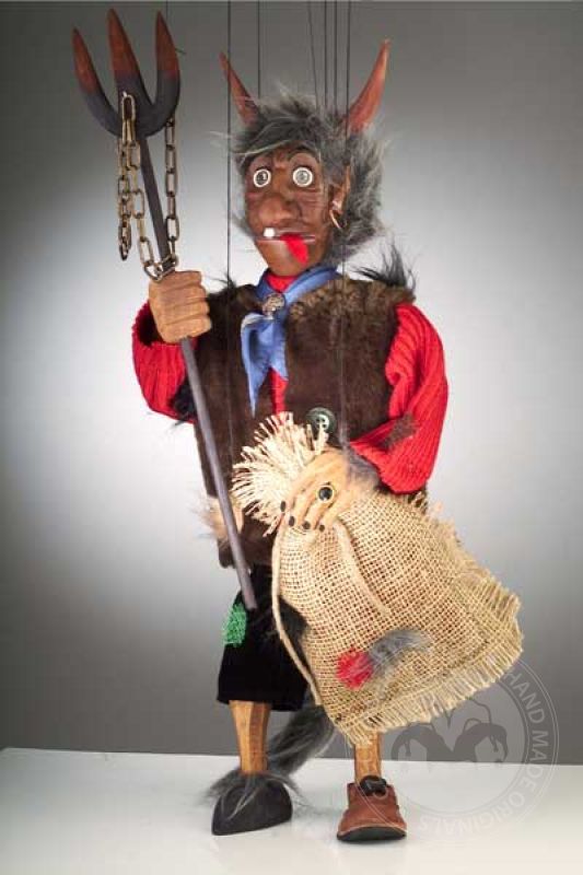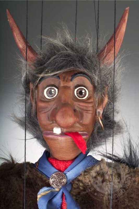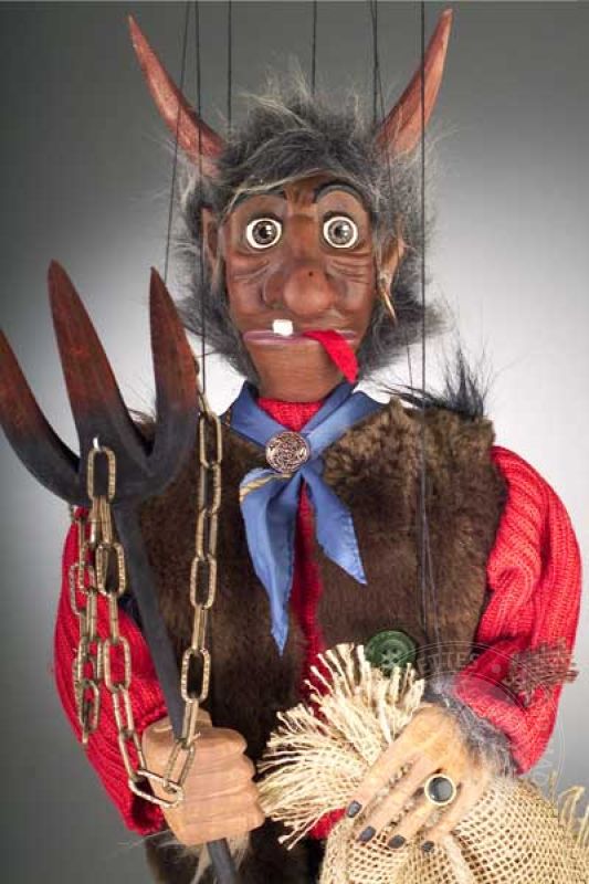 Esta marioneta parece un auténtico diablo. Tiene un chaleco de piel, una cadena y un saco, cuernos y su larga lengua roja sobresale. El personaje del diablo es muy popular en la mayoría de los cuentos y relatos checos.