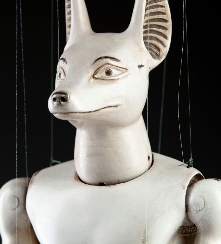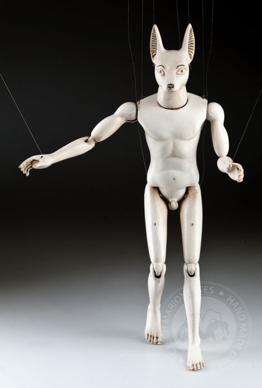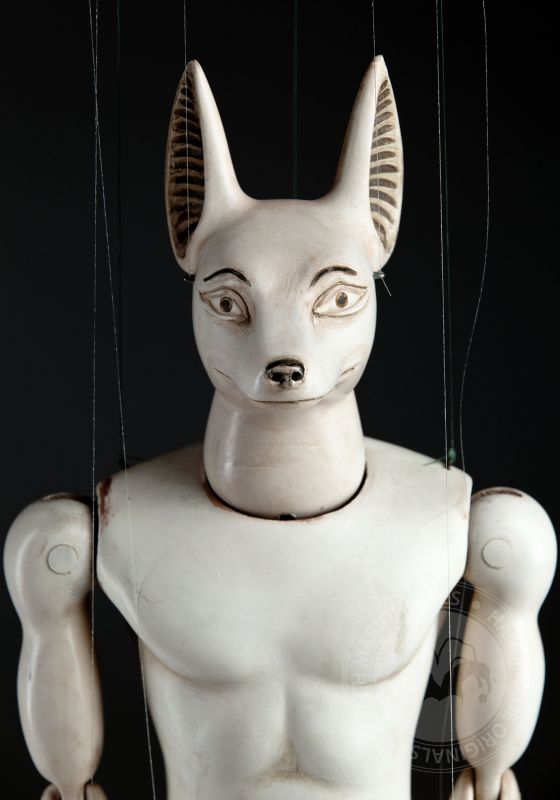 Esta obra maestra de marionetas del dios egipcio de la muerte es simplemente impresionante. Cada detalle merece tu atención. Permítanos presentarle la marioneta de Anubis de madera tallada a mano por el experto titiritero Vaclav.
