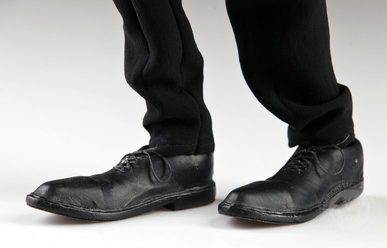 La marioneta se diseña e imprime utilizando tecnología 3D. Luego, afinamos y modelamos cuidadosamente cada centímetro del cuerpo, cosemos la ropa, creamos el cabello, pintamos el rostro y atamos los hilos a un controlador de madera.