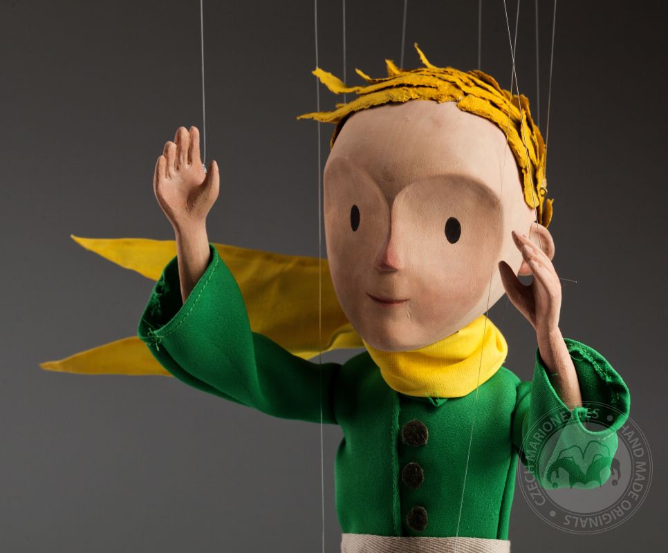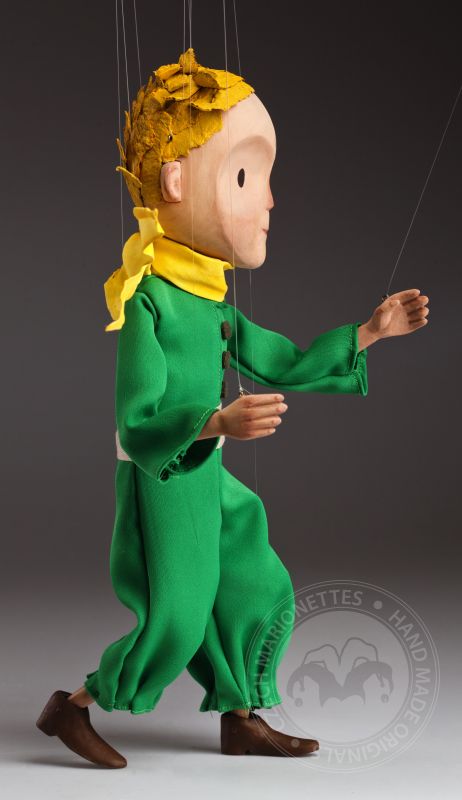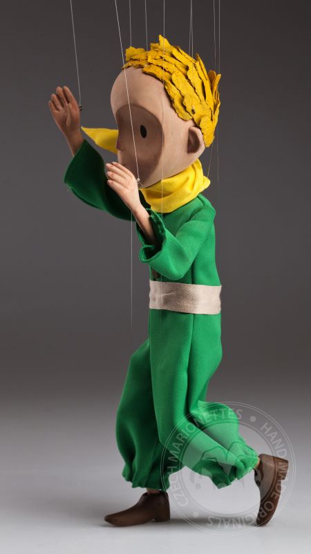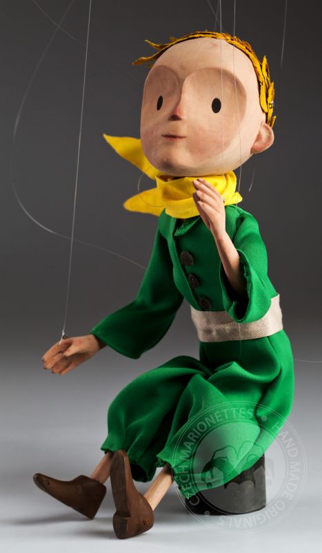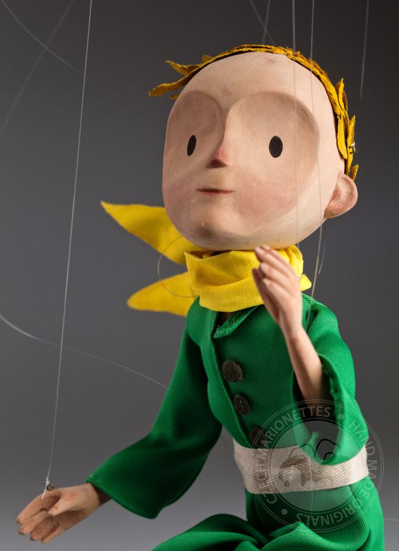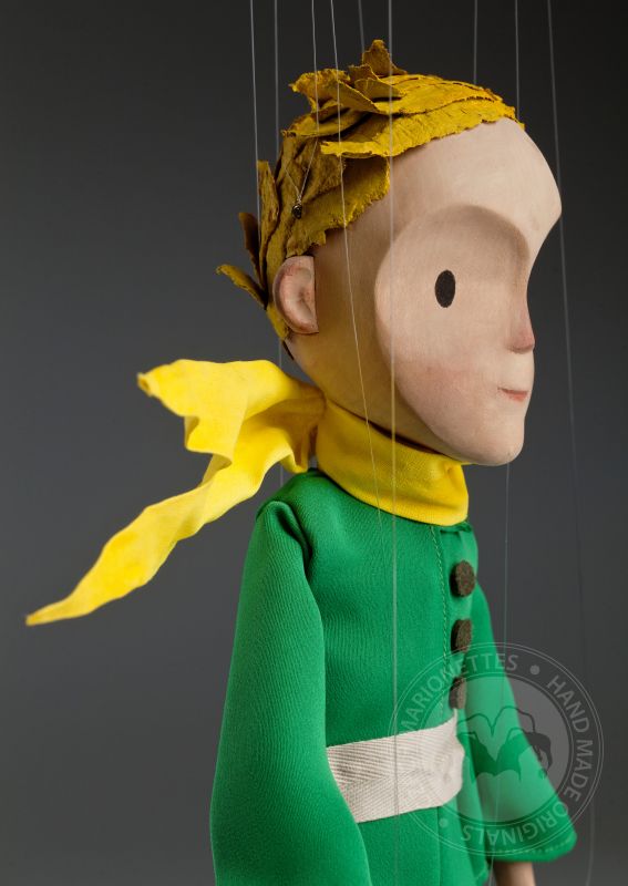 Marioneta de hilos de madera hecha a mano Esta marioneta absolutamente impresionante definitivamente te encantará por su parecido con el niño real y te brindará la vibra y la atmósfera de esta historia memorable. Esta marioneta se hizo a pedido para que se pareciera al Principito de la película. Todo el cuerpo y la cabeza están tallados a mano en madera de tilo y luego pintados cuidadosamente a mano. Todo su conjunto está cosido a mano prestando atención al más mínimo detalle. Una cosa muy llamativa de este pequeño es su pelo. Cada parte se empapa en pintura y luego se pega a la superficie pieza por pieza. La marioneta del Principito se convirtió inmediatamente en nuestro amor. Estamos seguros de que él también te encantará. \"
