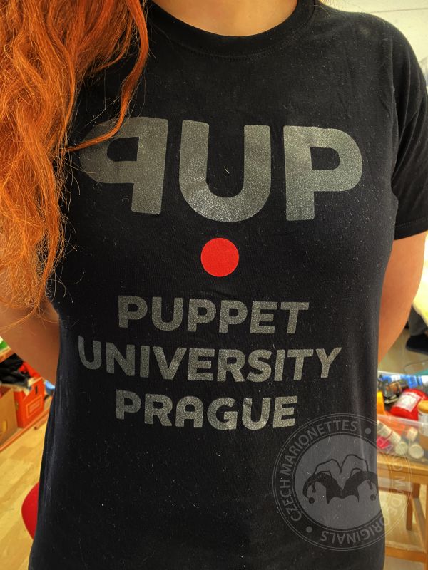 Apoya al arte de las marionetas checas comprando las camisetas de *Puppet University Prague*. Los ingresos se donan al desarrollo de nuestro taller y apoyan la transferencia de esta valiosa tradición marionetista a las nuevas generaciones