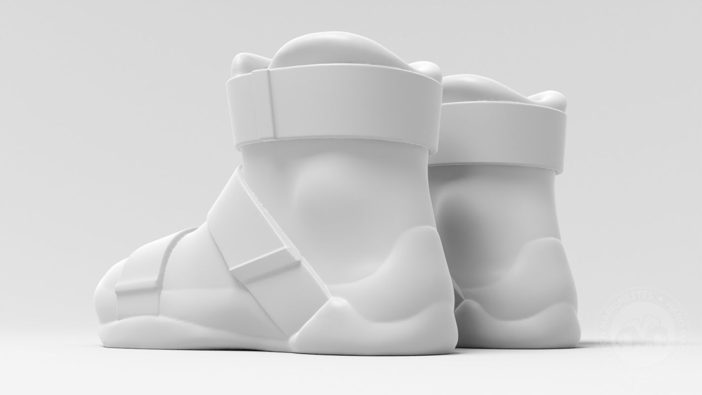 Compra y descarga un archivo STL del modelo de los zapatos negros del famoso jugador, diseñados para una marioneta de 40 pulgadas/100 cm (títere de hilos). Puedes usar este objeto 3D para cualquier propósito, o adquirir uno de nuestros cuerpos + controladores de marioneta y construir tu propia marioneta.