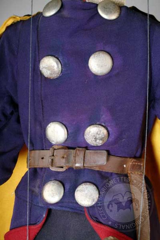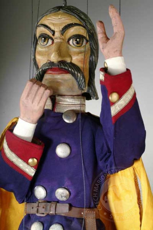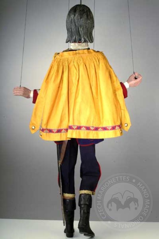 El tallador artístico, escultor y restaurador Bohumil Bek fue el único en su familia que no se convirtió en maestro, sino en artista. En 1909, Bohumil se mudó a Kutná Hora, donde fundó su taller y produjo altares y estatuas para iglesias, muebles, artículos de regalo y, no menos importante, marionetas muy encantadoras y hermosas. Sus belenes y estatuas de madera todavía se pueden ver en varias iglesias. Esta marioneta está hecha de materiales originales de alta calidad.