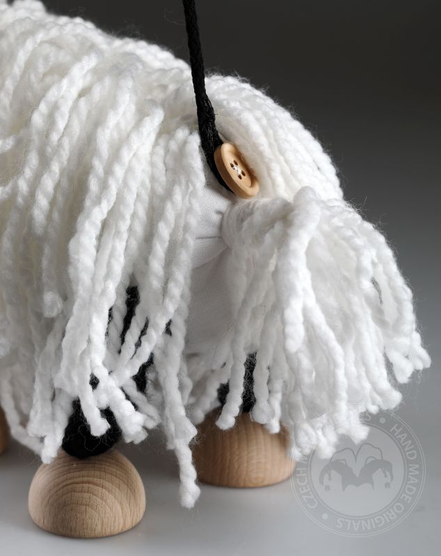 Esta marioneta suave de oveja Pepino viene en una clásica combinación de blanco y negro. Toda la creación está hecha a mano, pintada a mano y los materiales son ecológicos. El controlador es una simple barra de madera unida al cuerpo por dos cuerdas y dos botones con estilo. Permite que la marioneta se mueva como una marioneta tradicional. La oveja en blanco y negro es perfecta para niños a partir de 3 años y para cualquiera mayor:-) Es una amiga leal que siempre te alegrará.
