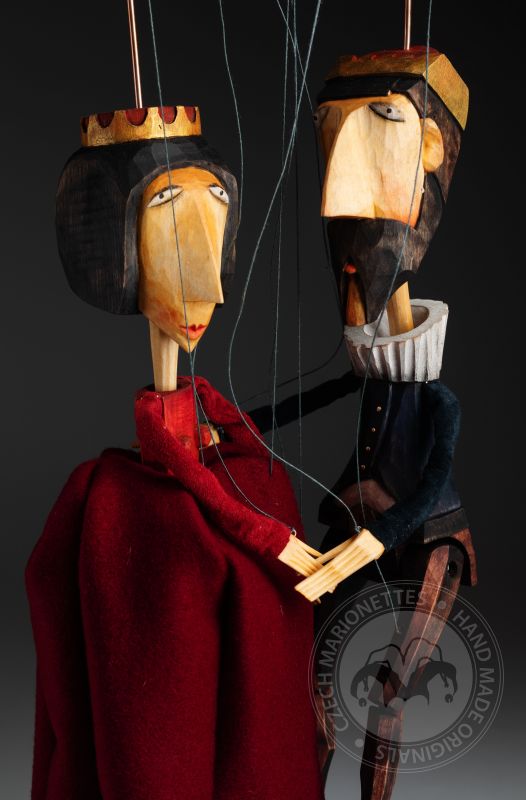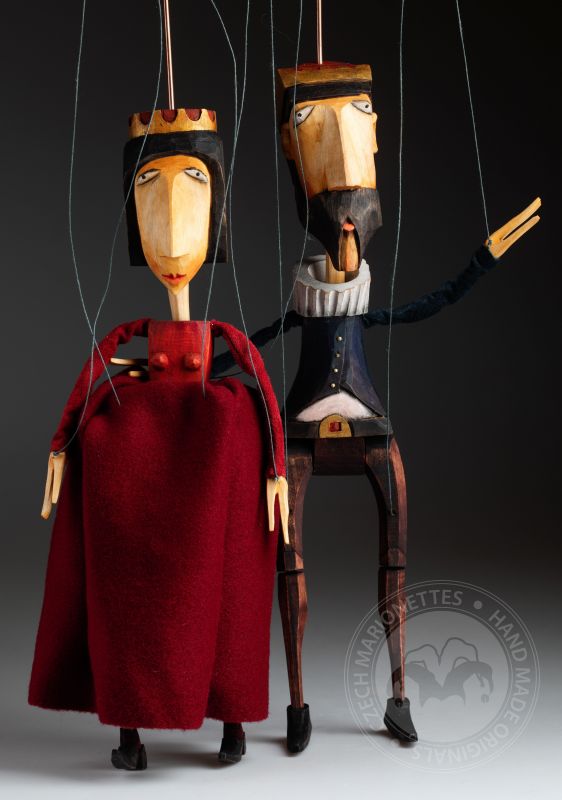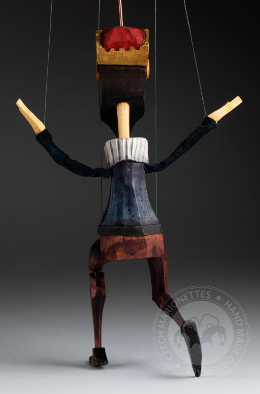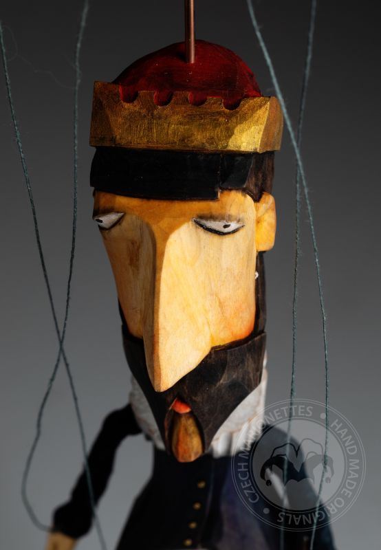 Esta marioneta rey es una pieza original tallada a mano en madera de tilo en un estilo único de marioneta decorativa. Creado por el talentoso Martin Kadlec.