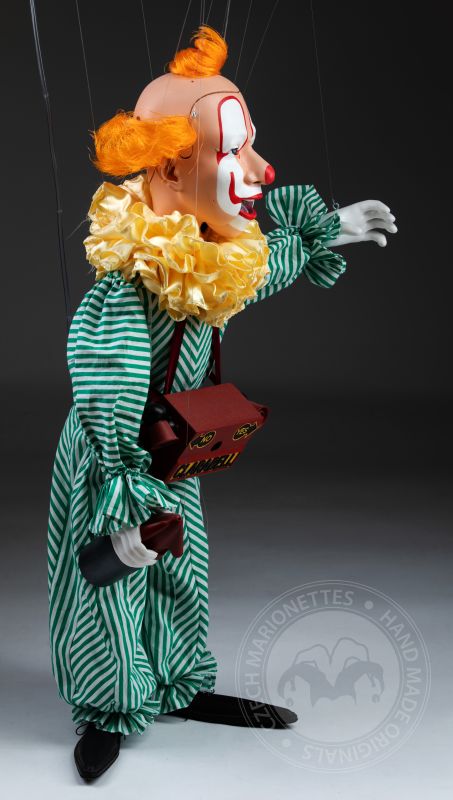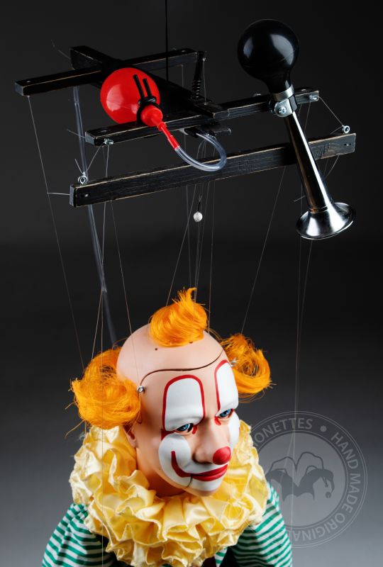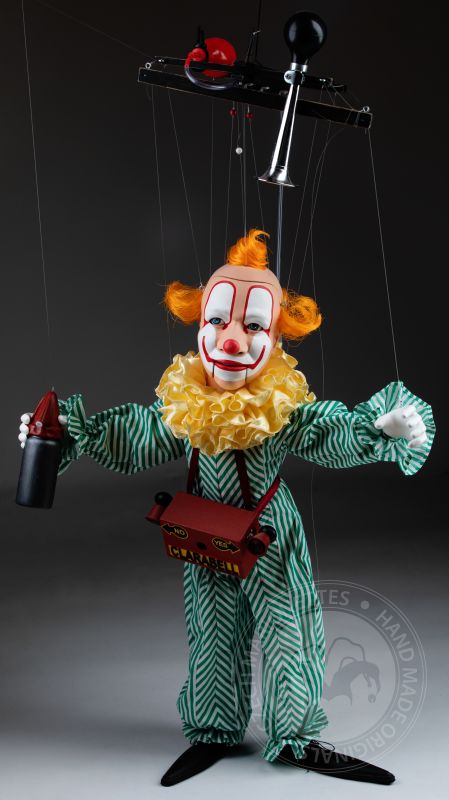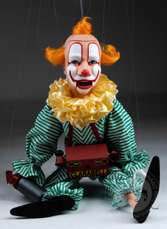El payaso **Clarabell** es una marioneta muy especial. Forma parte del elenco original del show *Howdy Doody*. ¡Esta marioneta puede rociar agua a través de un tubo y tocar la bocina! ¡Es pura diversión!