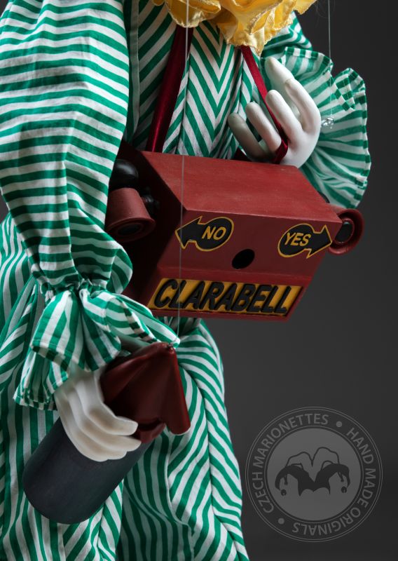 La marioneta de Clarabell fue elaborada utilizando tecnología 3D. Cada parte es hecha a mano, su atuendo está cosido a mano, y tanto su rostro como sus accesorios están pintados a mano. Clarabell cuenta con un controlador especial que le permite rociar agua y tocar la bocina.