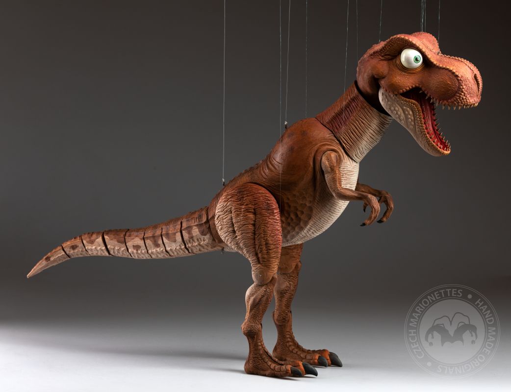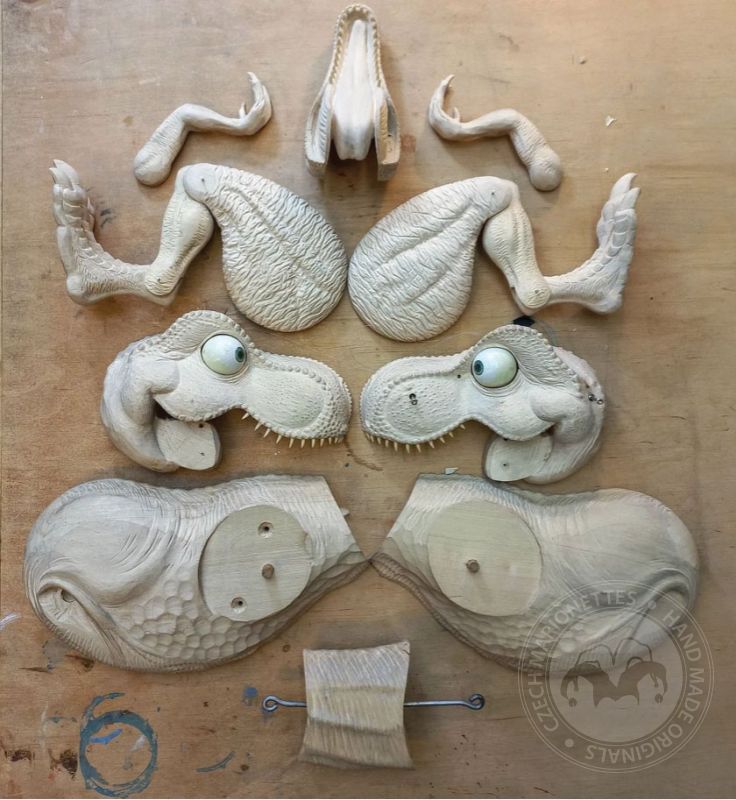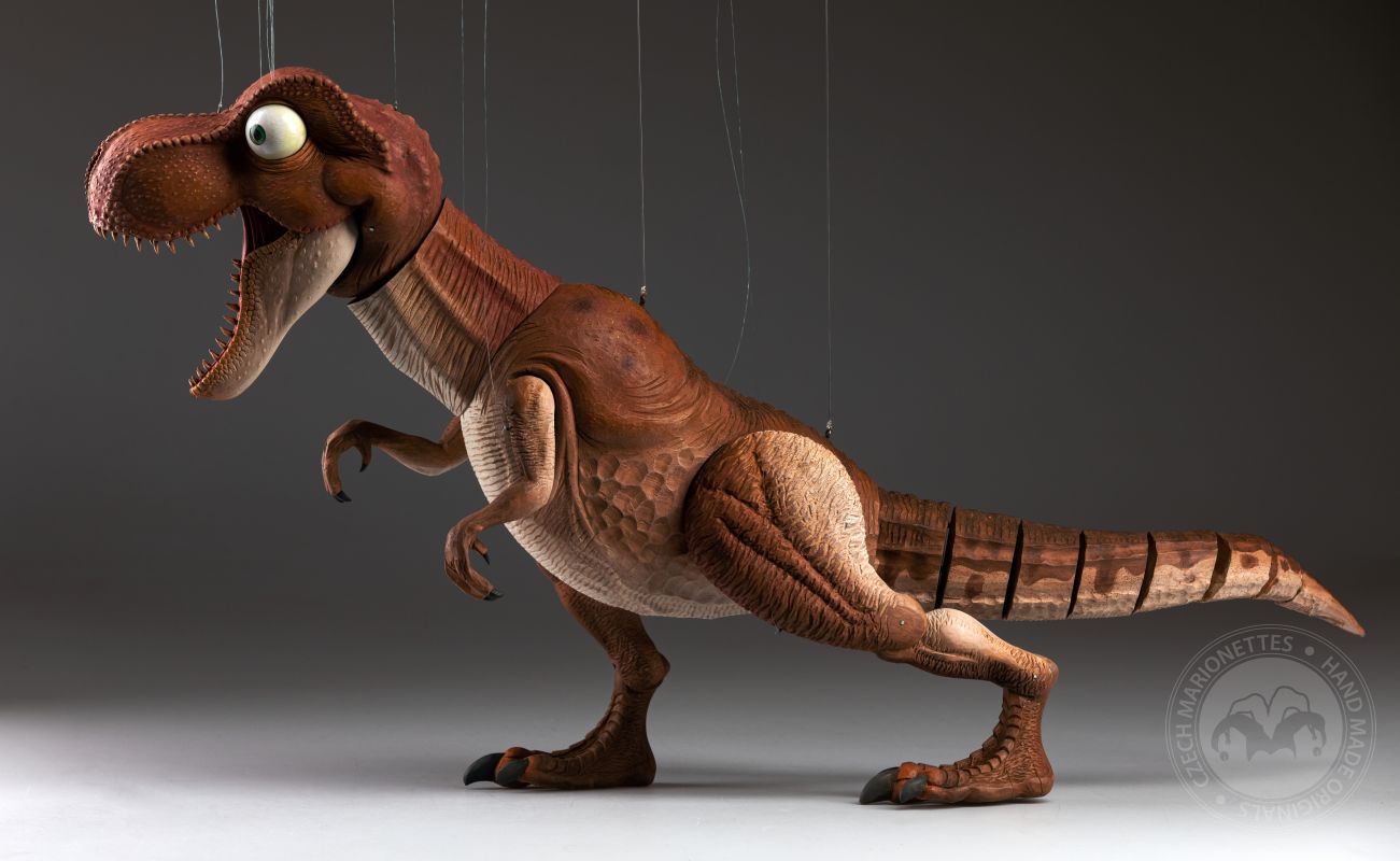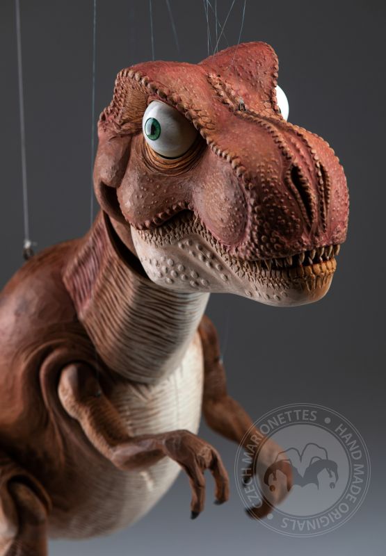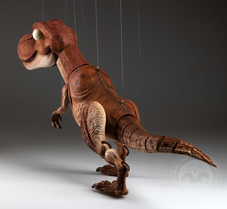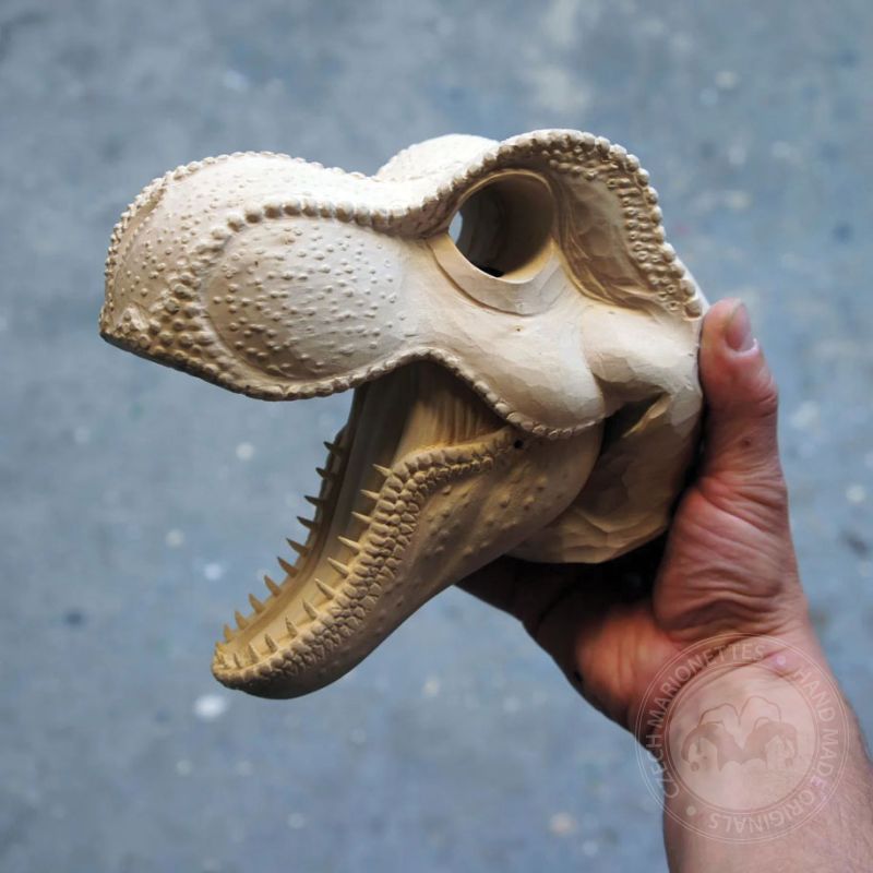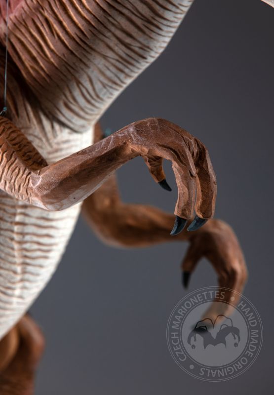 Esta impresionante creación de la marioneta de T-Rex fue realizada en colaboración con el artista Václav Krčál Jr. Toda la marioneta está tallada a mano en madera de tilo y pintada a mano posteriormente. Una verdadera obra de arte que combina habilidad artesanal y creatividad, perfecta para cualquier coleccionista o amante de las marionetas.