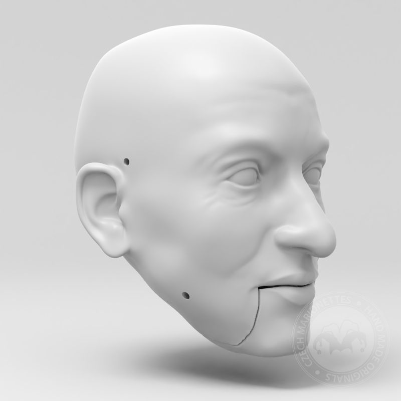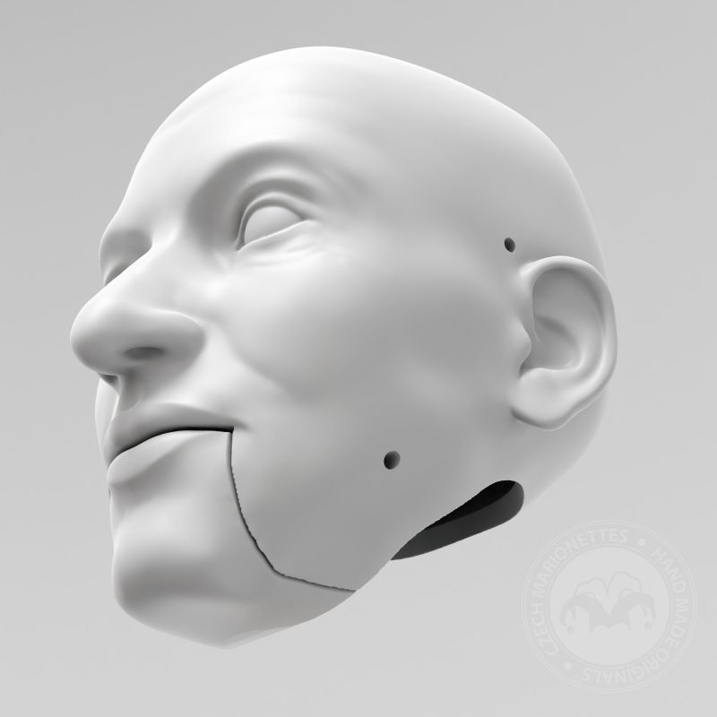 Compra y descarga el modelo de cabeza de hombre con boca móvil y un agujero para ojos móviles. ¡Puedes imprimirlo fácilmente en cualquier impresora 3D!