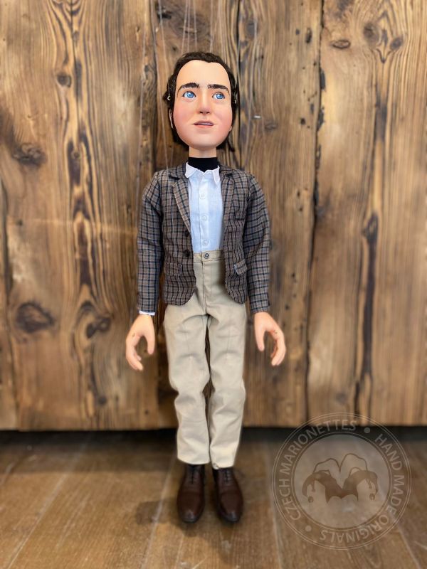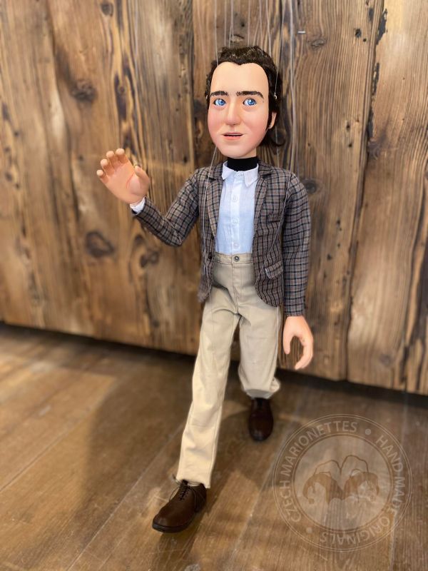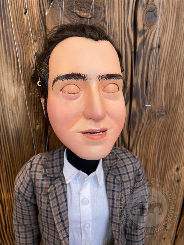 Andy Kaufman es una leyenda entre los comediantes de stand-up. ¡Esta marioneta captura perfectamente su carisma! Marioneta diseñada en 3D, hecha y pintada a mano
