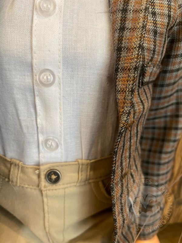 Usamos un programa gráfico en 3D para hacer la cabeza. Todas las partes se imprimieron, cepillaron, rociaron, ensamblaron y pintaron a mano cuidadosamente. Si eres fanático de la película "Man on the Moon", seguro reconocerás el atuendo de Andy, que por supuesto también está hecho a mano.