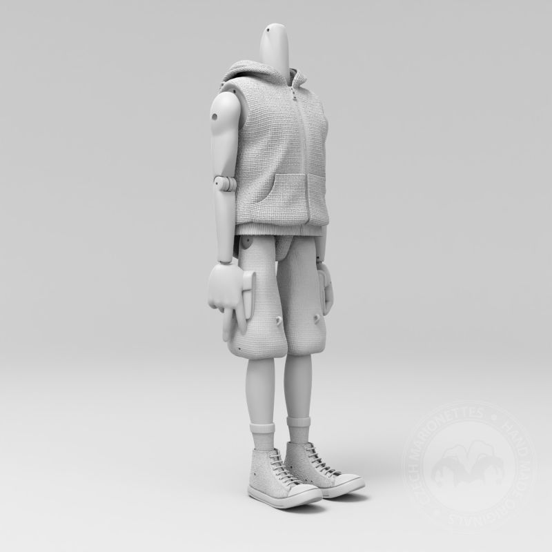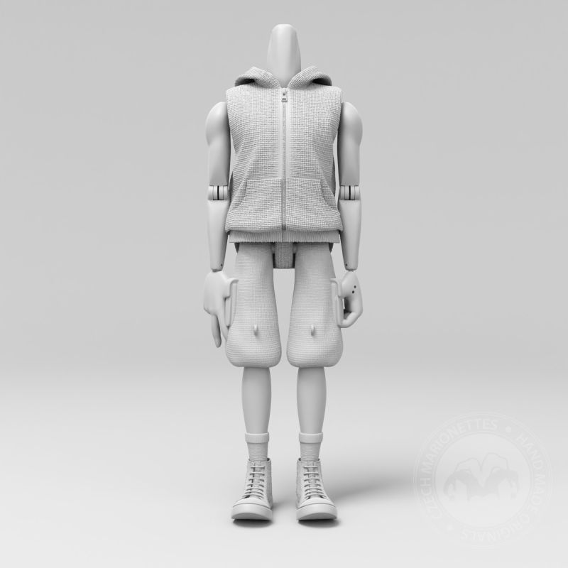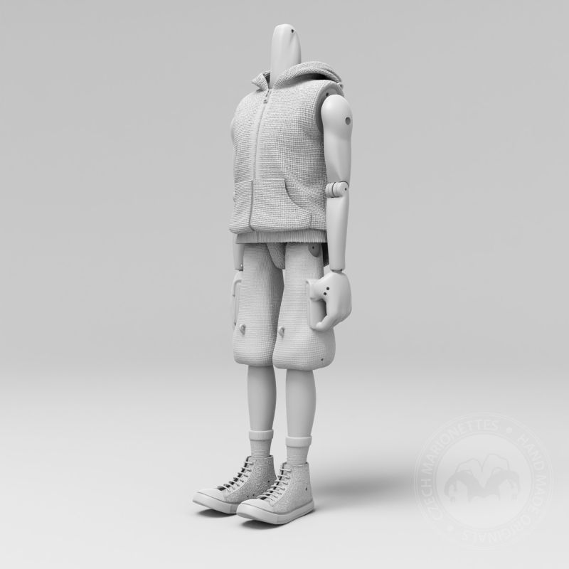 Presentamos nuestro innovador modelo de cuerpo de marioneta imprimible en 3D, que te sumergirá en un mundo de creatividad y diversión. Este cuerpo de marioneta único, con chaleco, capucha, pantalones cortos y zapatillas estilo Converse, está listo para entrar en tu imaginación y convertirse en la base para tu propia creación de marionetas.