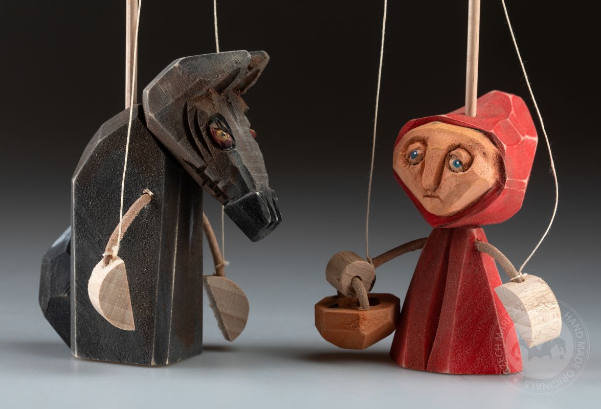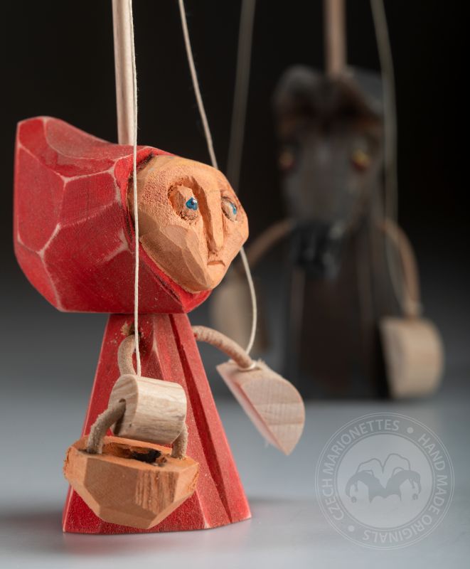 Una versión muy linda de Caperucita Roja. Marioneta de pie de madera de 13 cm para ti. Combina perfectamente con la marioneta del lobo.