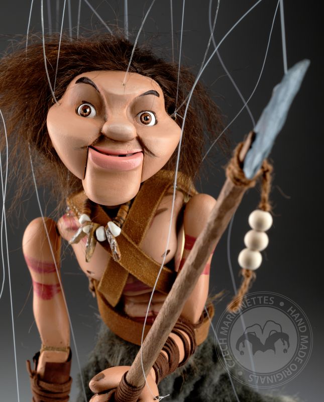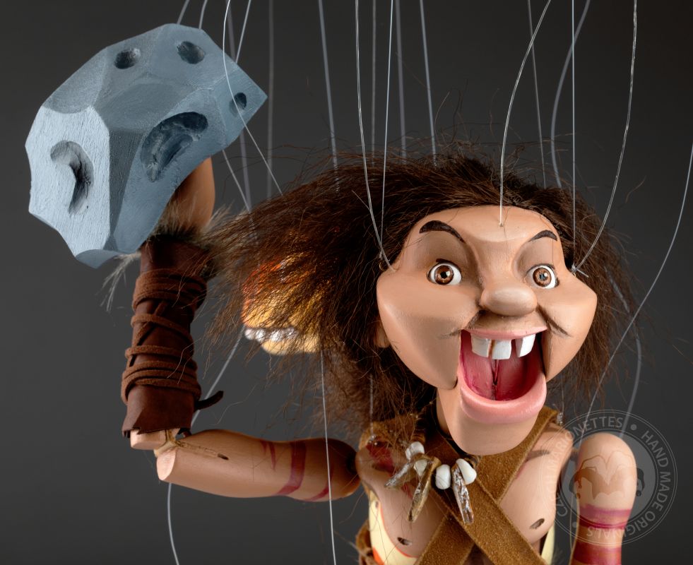 Esta marioneta de madera tallada a mano es una representación única y detallada de un cavernícola de tiempos antiguos. Mide aproximadamente 30 cm de altura, está hábilmente tallada en madera de tilo y pintada en tonos tierra para darle un aspecto realista, manteniendo al mismo tiempo un toque juguetón y caricaturesco.