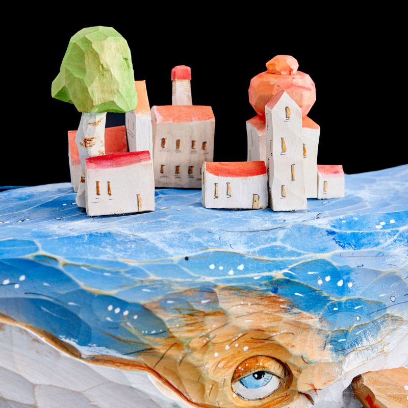 Estas encantadoras ballenas, que llevan aldeas en miniatura sobre sus majestuosos lomos, evocan un sentido de asombro y aventura.