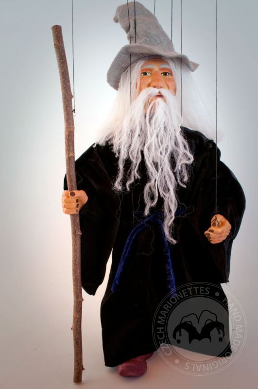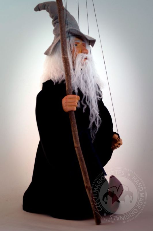 es una pieza hecha a mano de 40 cm de altura. Esta figura muestra un mago clásico con una barba larga y un traje encantador. La marioneta está hecha de yeso, lo que le da una sensación sólida y tradicional, mientras que los detalles pintados a mano enfatizan su aura mágica. Incluye un mecanismo de control clásico con hilos, ideal para coleccionistas o para añadir un toque místico a cualquier habitación.