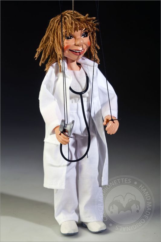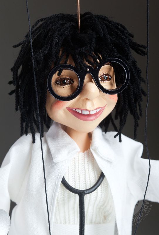 Esta encantadora marioneta de la Doctora Betty lleva una típica bata blanca y su inseparable estetoscopio. Será una gran decoración tanto para el consultorio de cualquier médico como para la habitación de tus hijos.