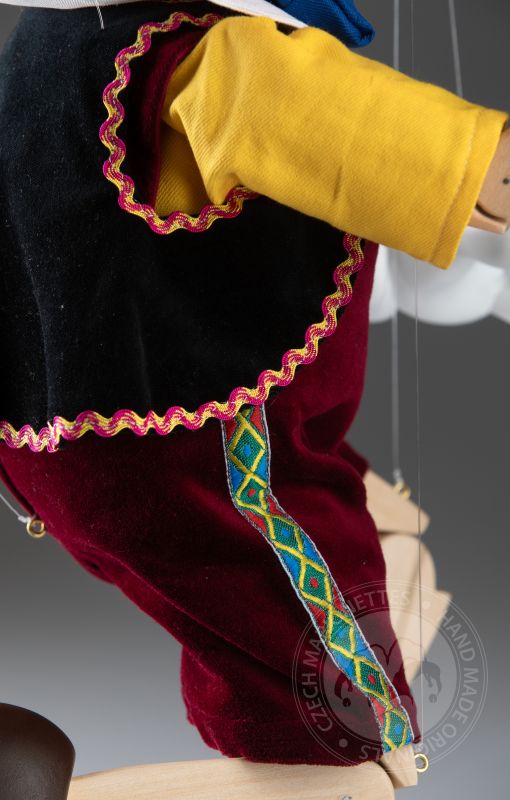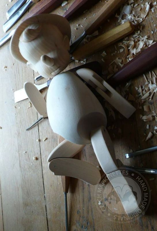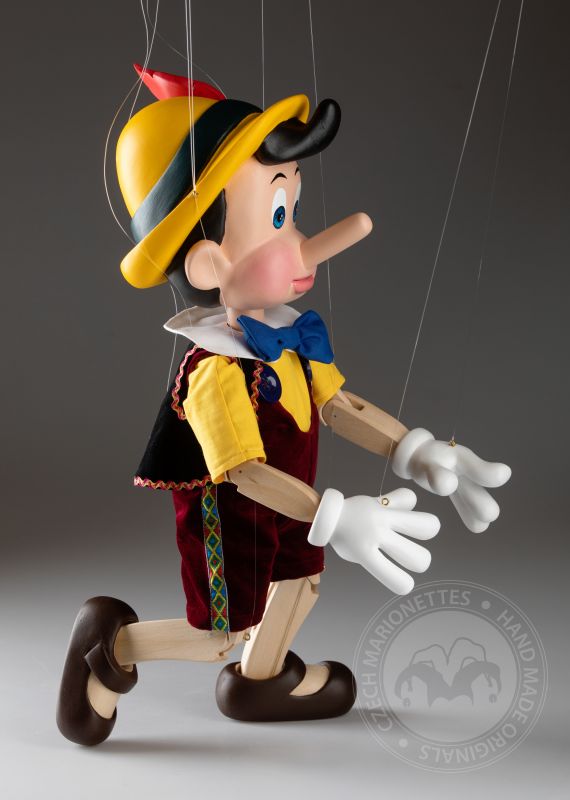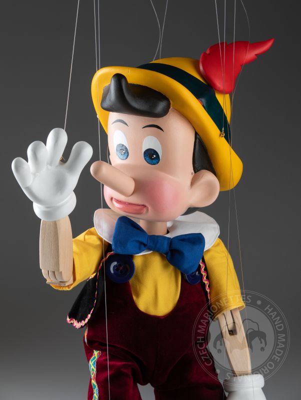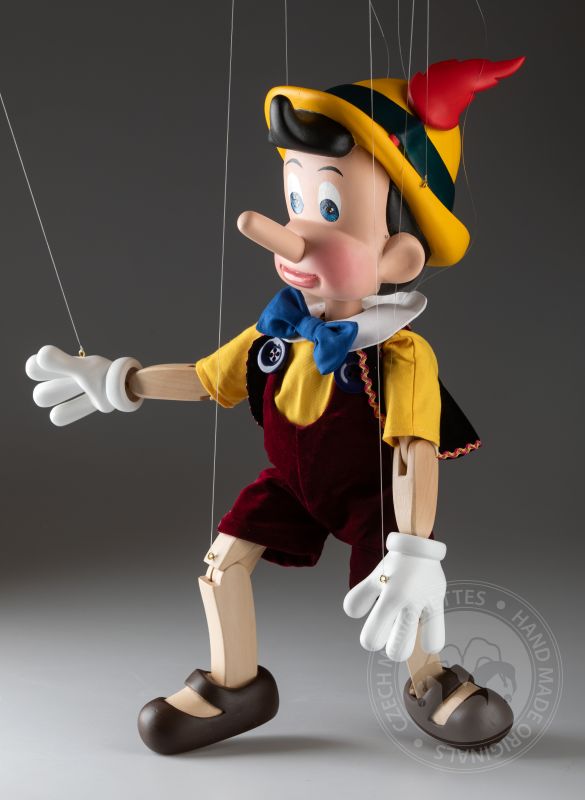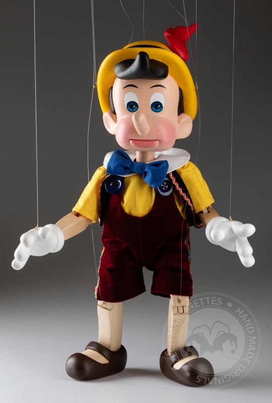 Un trabajo maravilloso, resultado de horas de tallado a mano con cincel en madera de hermosas formas. La pintura es meticulosa, con gran movilidad y ojos que parpadean. La imagen de Pinocho es increíblemente fiel a los cuentos de hadas de Disney. Producimos réplicas solo bajo pedido. La producción de una marioneta como esta puede llevar hasta tres meses.
