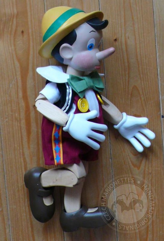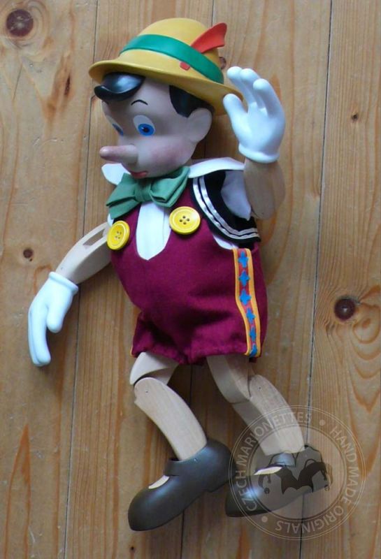 Este Pinocho es una copia exacta de la marioneta utilizada en la animación de Walt Disney. Una obra original, bellamente tallada a mano con paciencia.