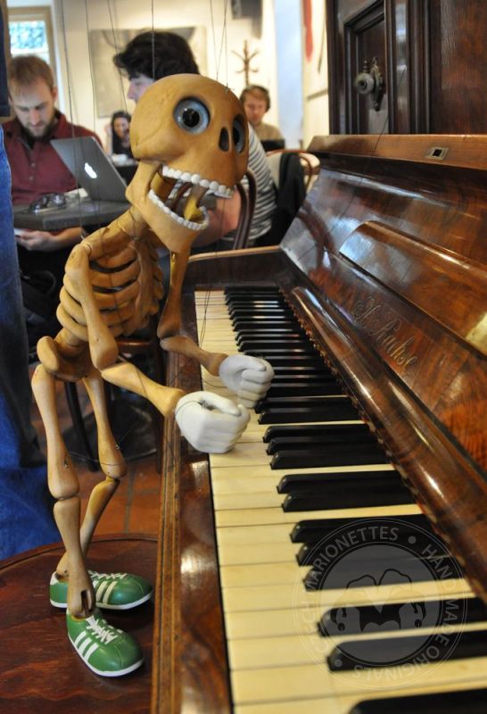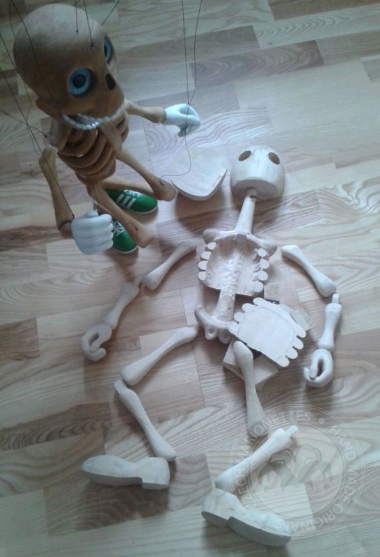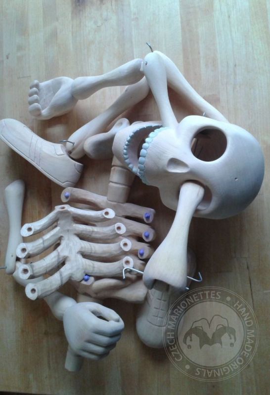 Este esqueleto danzante totalmente profesional, perfectamente hecho, único y alegre hecho por Aleš Mertl es un original de madera tallada a mano de Bonnie Skeleton. Su cuerpo está hecho de madera de tilo y está listo para intérpretes profesionales. Sólo una mirada a sus hermosos ojos azules te hará feliz y bailará. Este esqueleto tiene un dispositivo operativo profesional. Puedes ver nuestro vídeo amateur grabado en https://www.youtube.com/watch?v=tqrOZ0-fSm4