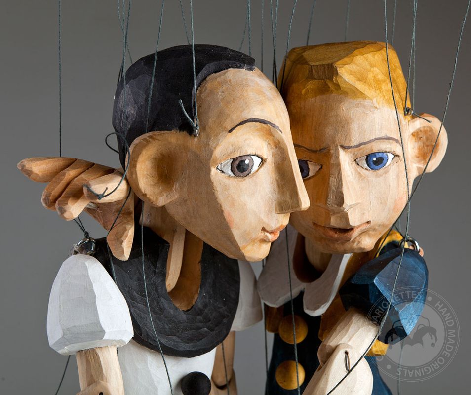 Este par de marionetas de madera talladas a mano son absolutamente únicas en todas partes. Los hermanos de madera de Czech Marionette, iluminarán cada habitación o colección.