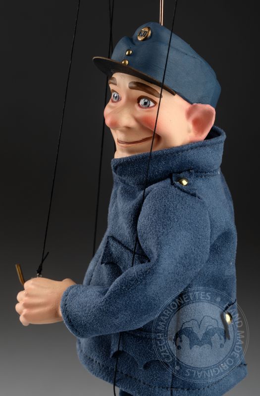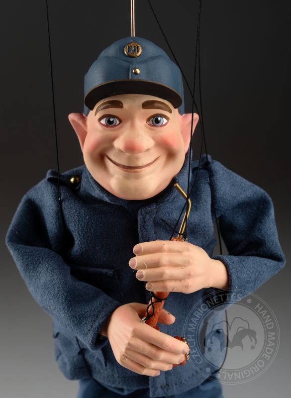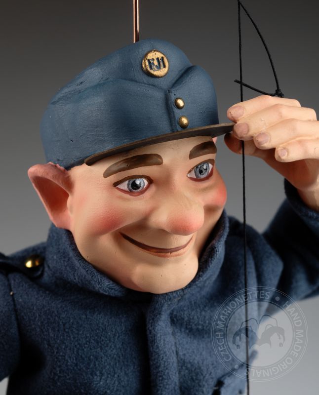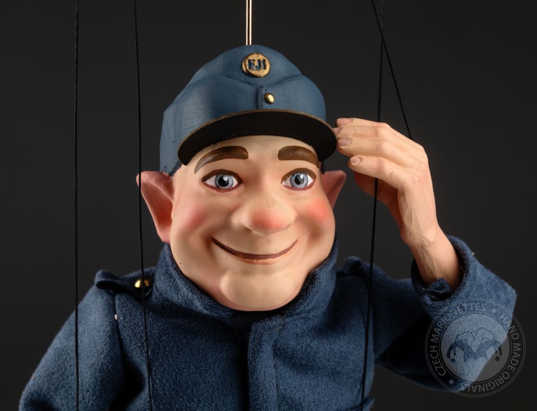 La marioneta de Švejk está inspirada en un famoso personaje checo del libro "Las aventuras del buen soldado Švejk" del célebre escritor checo Jaroslav Hašek. El soldado Švejk es conocido por su gran sentido del humor y su enfoque intrépido hacia las autoridades. Nuestra marioneta representa a la perfección su carácter.