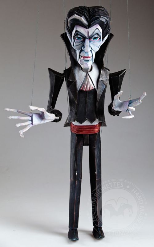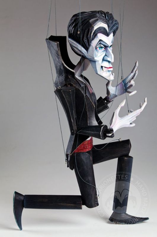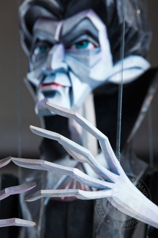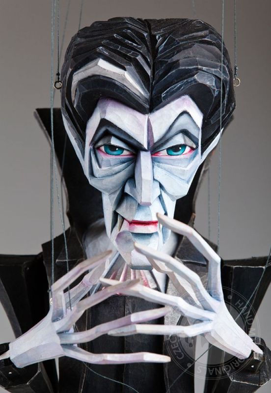 Hermosa marioneta vampira ¡Mira las manos! Tienes que cortar la madera de tilo en pleno invierno y secarla lentamente durante un par de años para que el enorme bloque de madera sea lo suficientemente estable como para poder tallar dedos tan pequeños. Aparte de esto, hay que conocer la estructura de las vetas y, por supuesto, poder transformarlas en una forma estéticamente bella. Por eso lo llamamos una obra maestra... Vampiro en más detalles Este Vampiro es conocido en algunas partes del mundo como el Barón de Praga. Barnabas January también tiene poder sobre otros vampiros y humanos. Por suerte, nuestra marioneta dejó de asustar a la gente hace cientos de años y estará encantado de encontrar un lugar acogedor en tu casa para relajarse. El vampiro Barnabas pertenece por derecho a Lo mejor de las marionetas checas. Además de su personaje, hay muchos detalles en esta marioneta que merecen tu atención. Toda la creación está tallada a mano en madera y pintada a mano con gran atención al detalle. Como puedes ver la madera tiene bordes muy afilados. Este estilo de talla le da a esta marioneta una apariencia casi cubista. Y aumenta el valor artístico de la marioneta.< /span> ¡Actualización gratuita al envío por FedEx!Solicite esta marioneta con envío estándar y se la enviaremos con entrega urgente.
