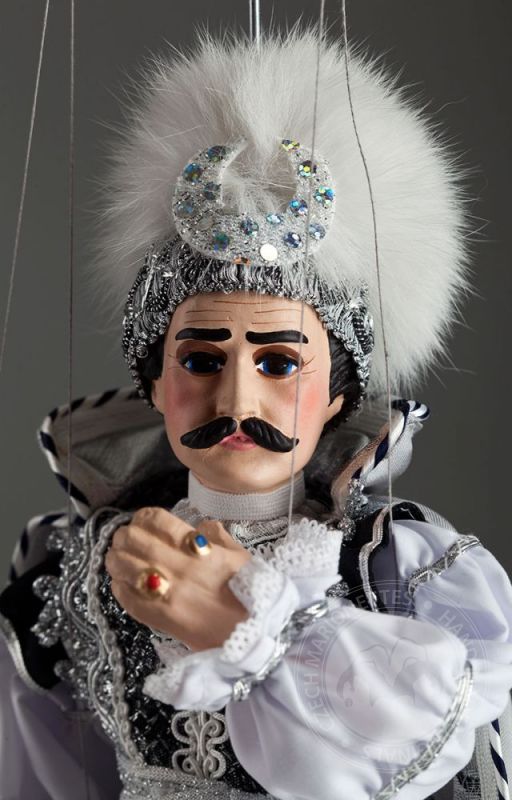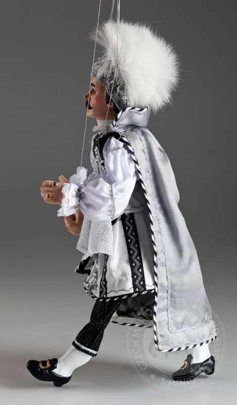 Esta marioneta detallada y muy decorativa es obra de hábiles titiriteros checos. El magnífico disfraz convierte a la marioneta en una pequeña obra de arte.